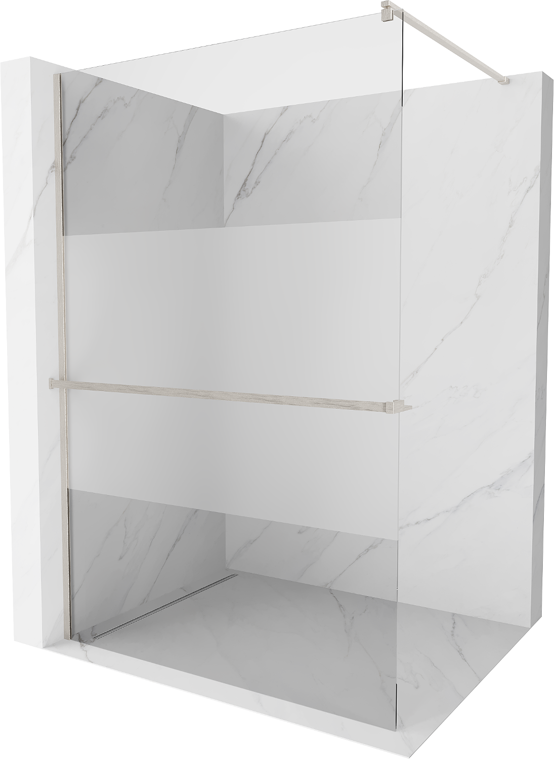 Mexen Kioto+ douchewand met plank Walk-in 110 x 200 cm, transparant/matglas, geborsteld nikkel - 800-110-121-97-35