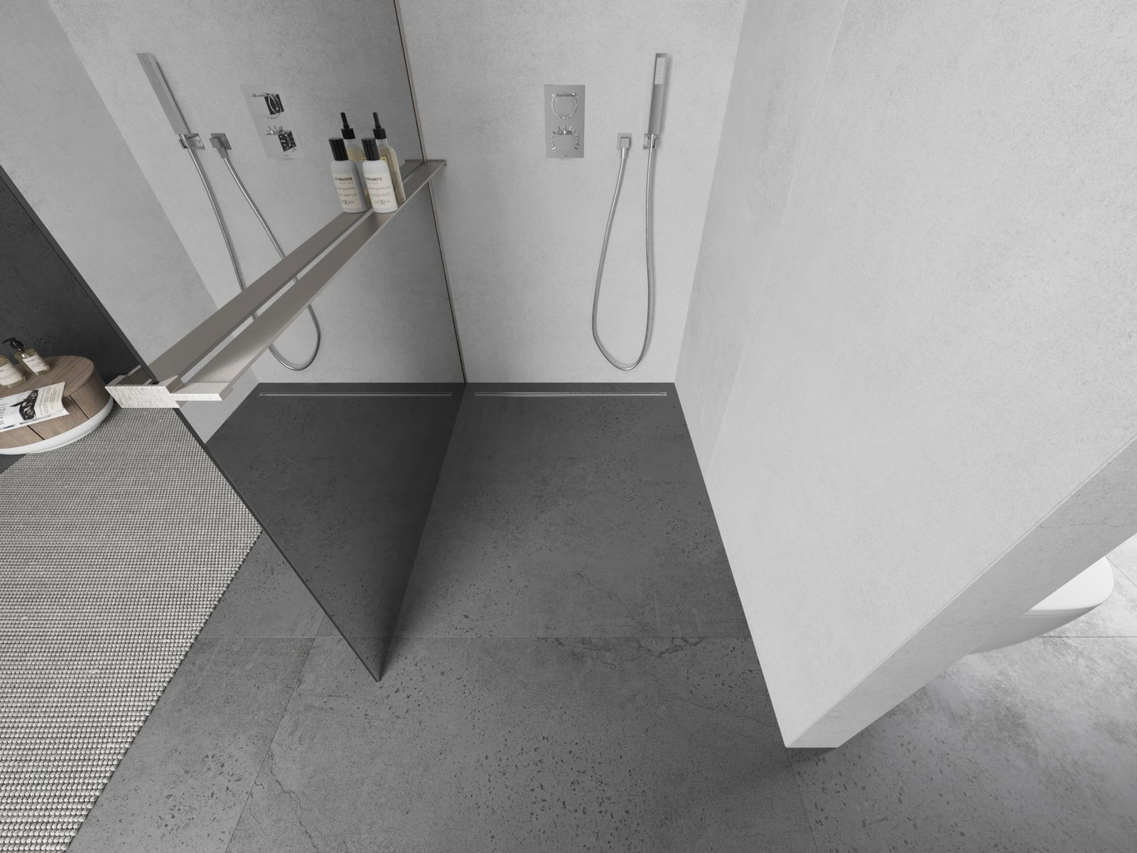 Het product kan naar behoefte zowel op de douchebak als direct op de vloer worden gemonteerd. De universele montagewijze maakt het mogelijk het product aan te passen aan verschillende soorten badkamers en ruimtelijke configuraties.
