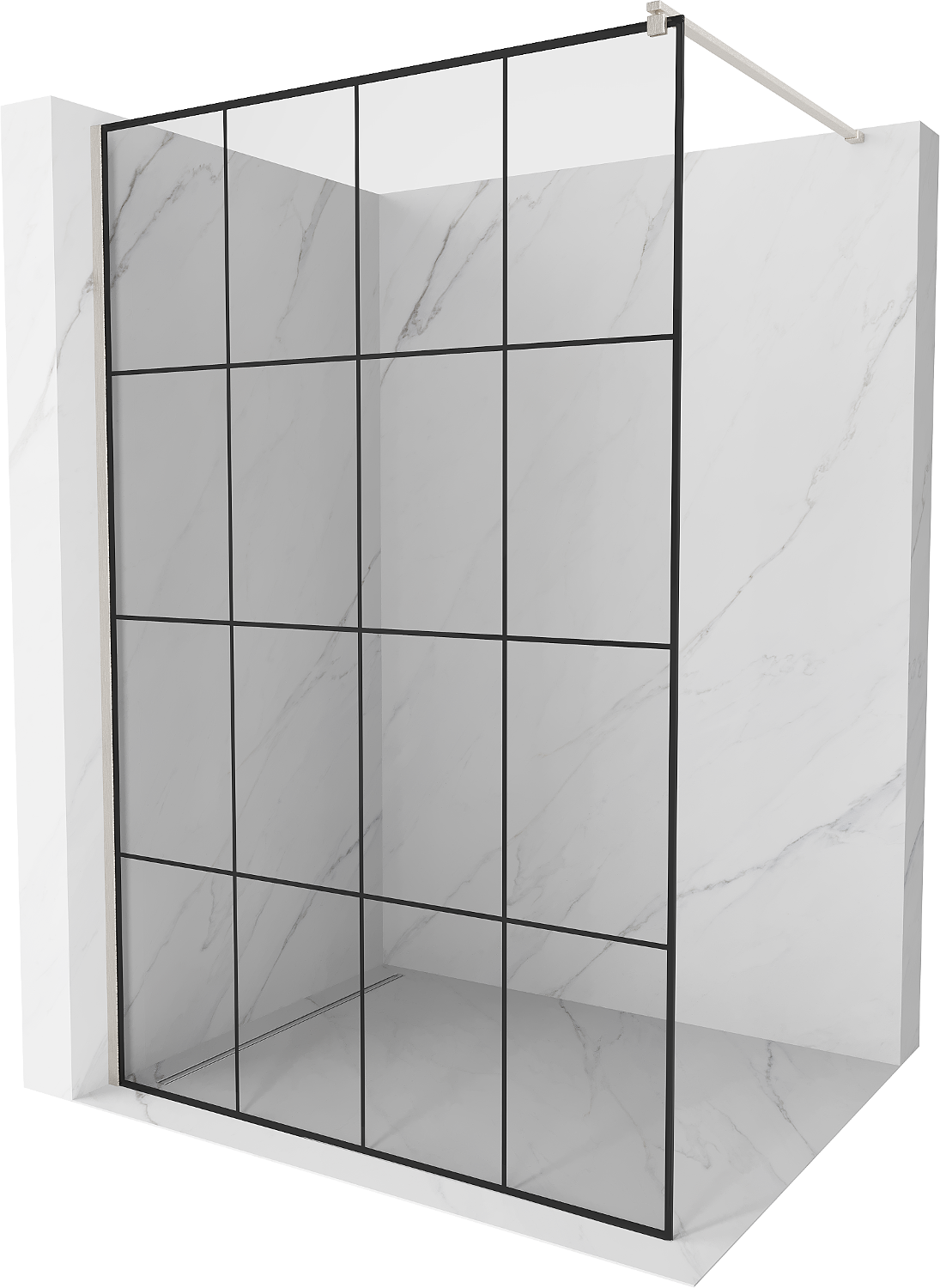 Mexen Kioto douchewand Walk-in 160 x 200 cm, zwart raster 8 mm, geborsteld nikkel - 800-160-101-97-77