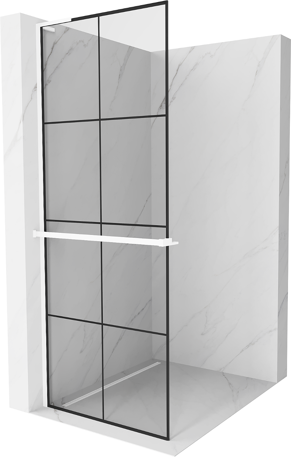 Mexen Kioto+ L douchewand met plank Walk-in 90 x 200 cm, zwart rooster, wit - 800-090-123-20-77