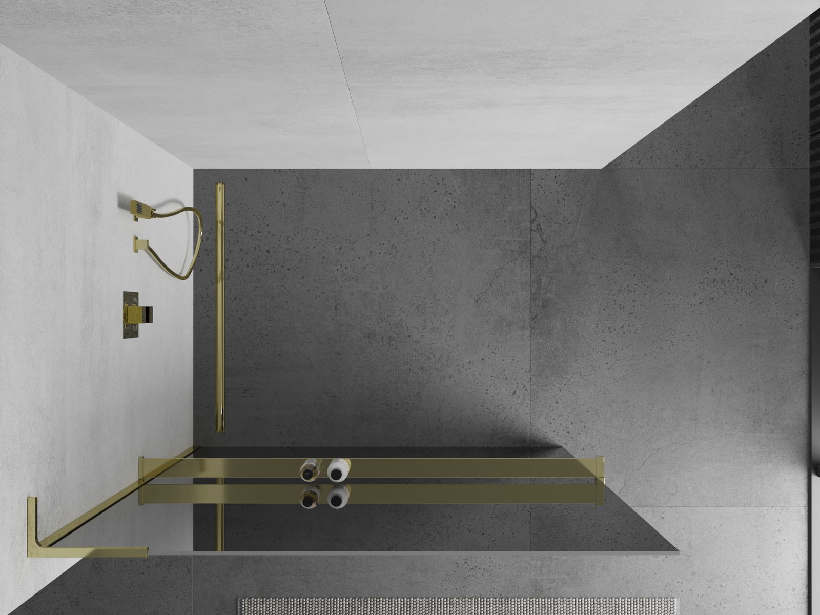Mexen Kioto+ L douchewand met plank Walk-in 90 x 200 cm, spiegel, goud - 800-090-123-50-50