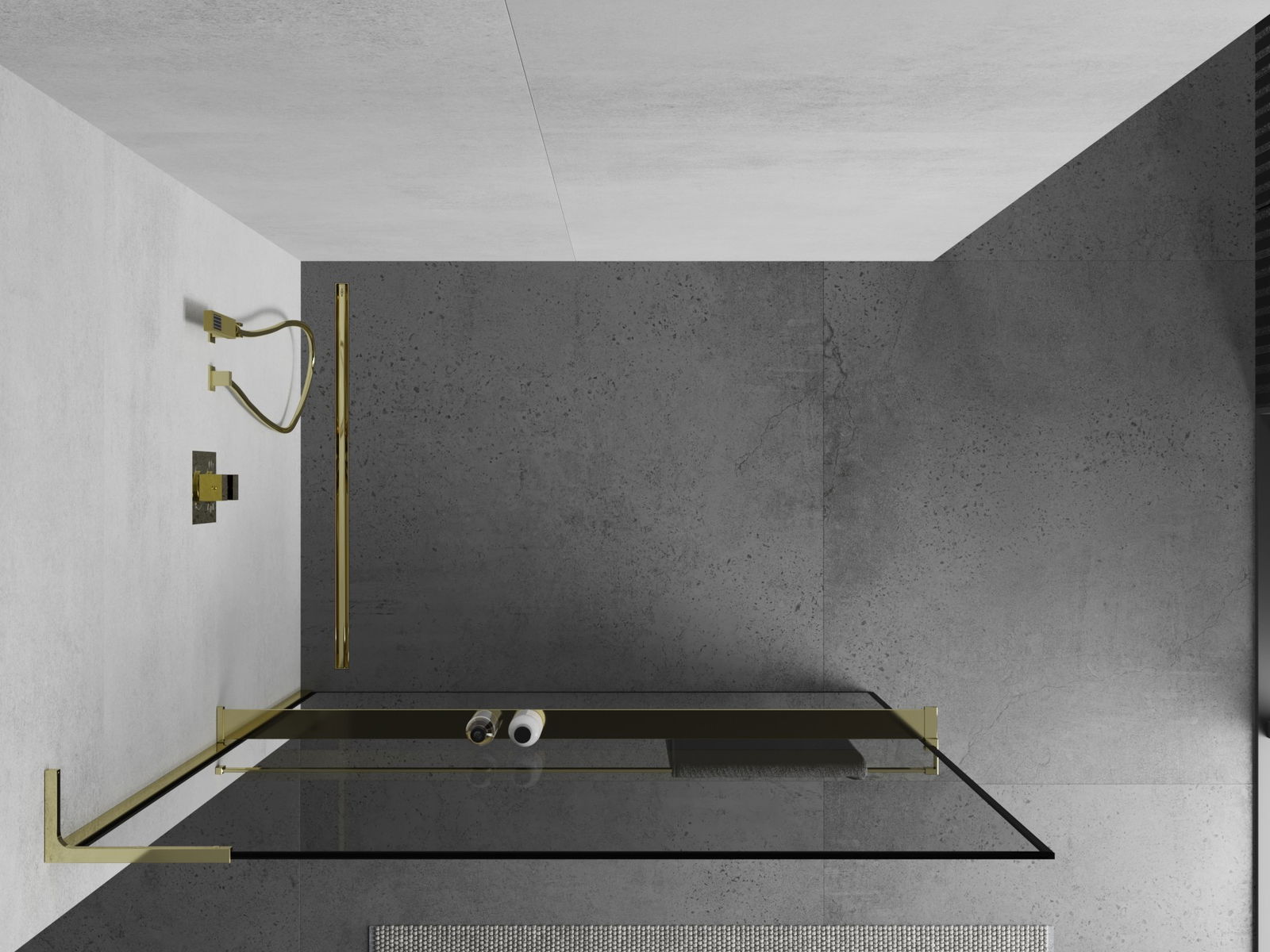 Mexen Kioto+ L douchewand met plank Walk-in 120 x 200 cm, zwart frame, goud - 800-120-123-50-70
