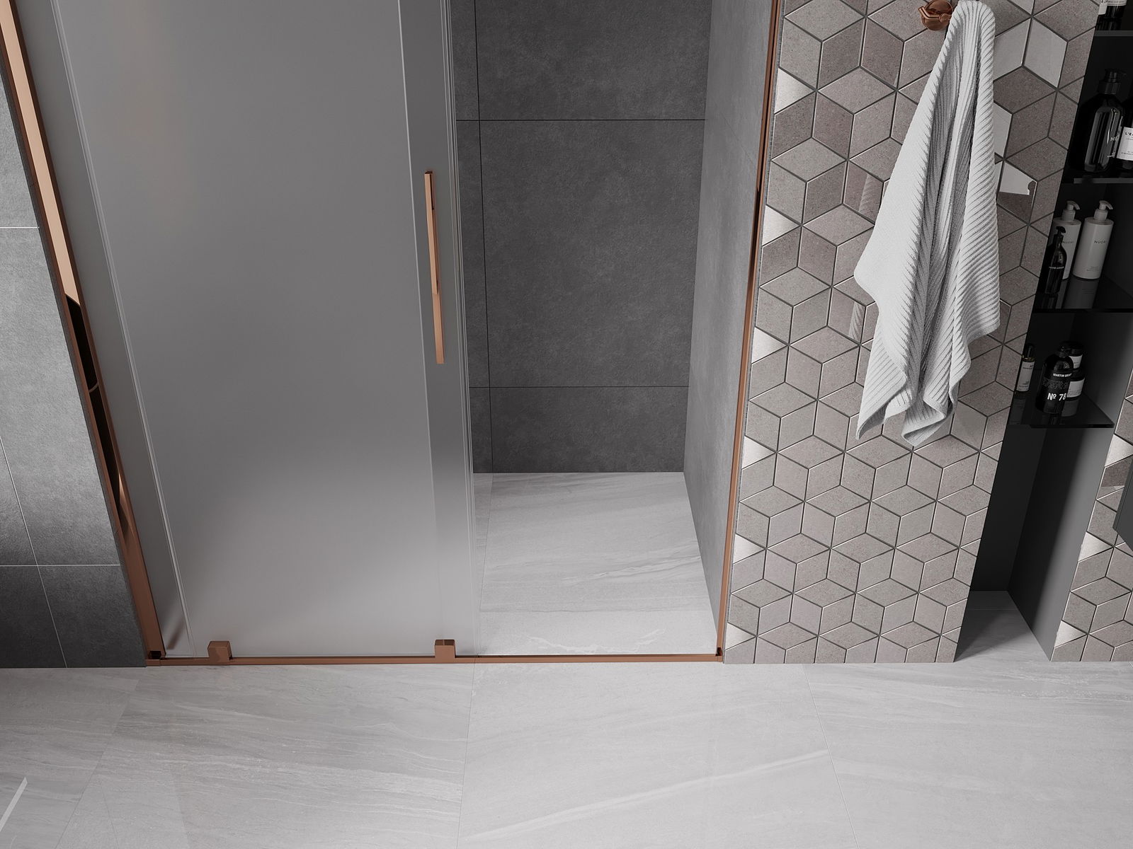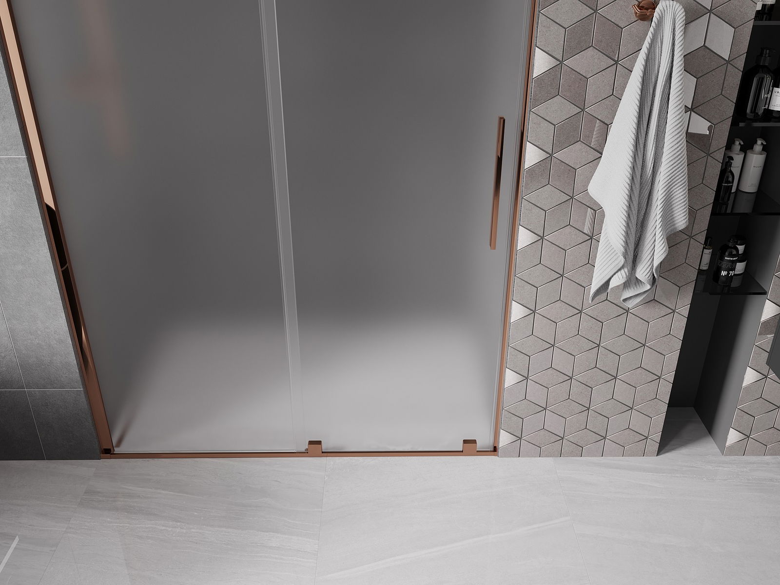 Mexen Velar schuifdouchedeur 160 cm, matglas, roségoud - 871-160-000-31-60