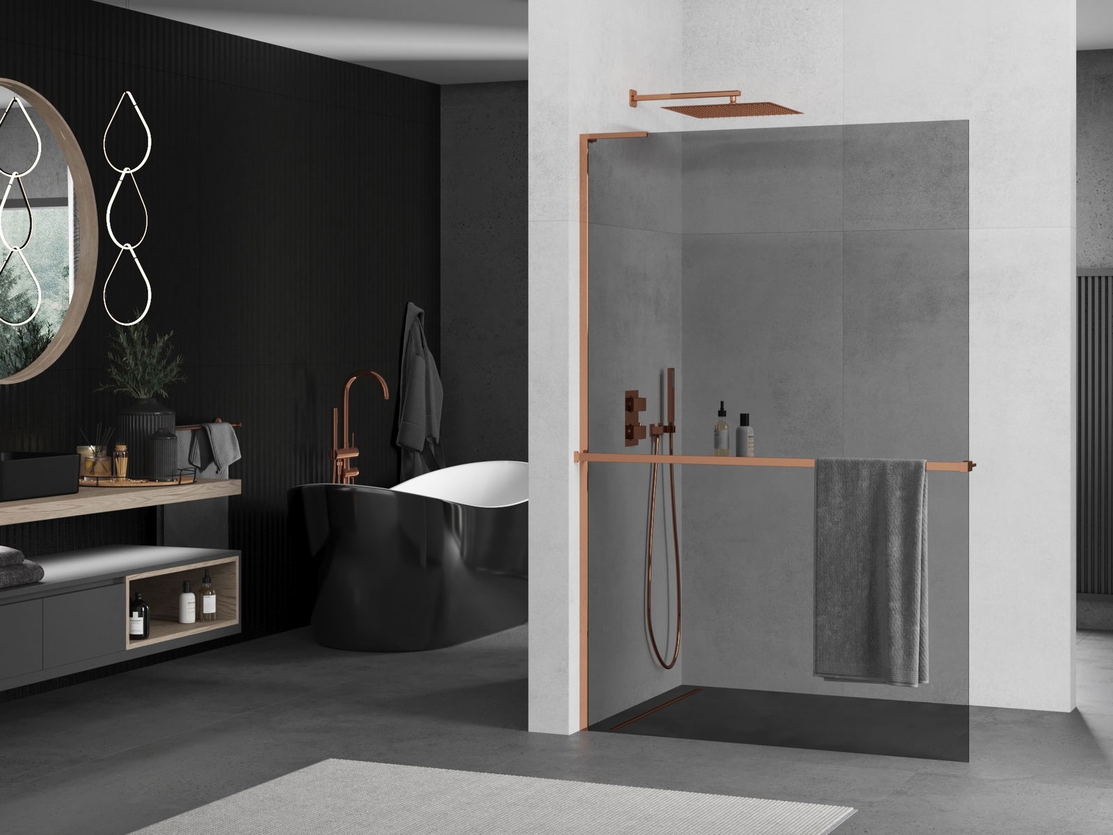 Mexen Kioto+ L douchewand met plank Walk-in 110 x 200 cm, grafiet, roze goud - 800-110-123-60-40