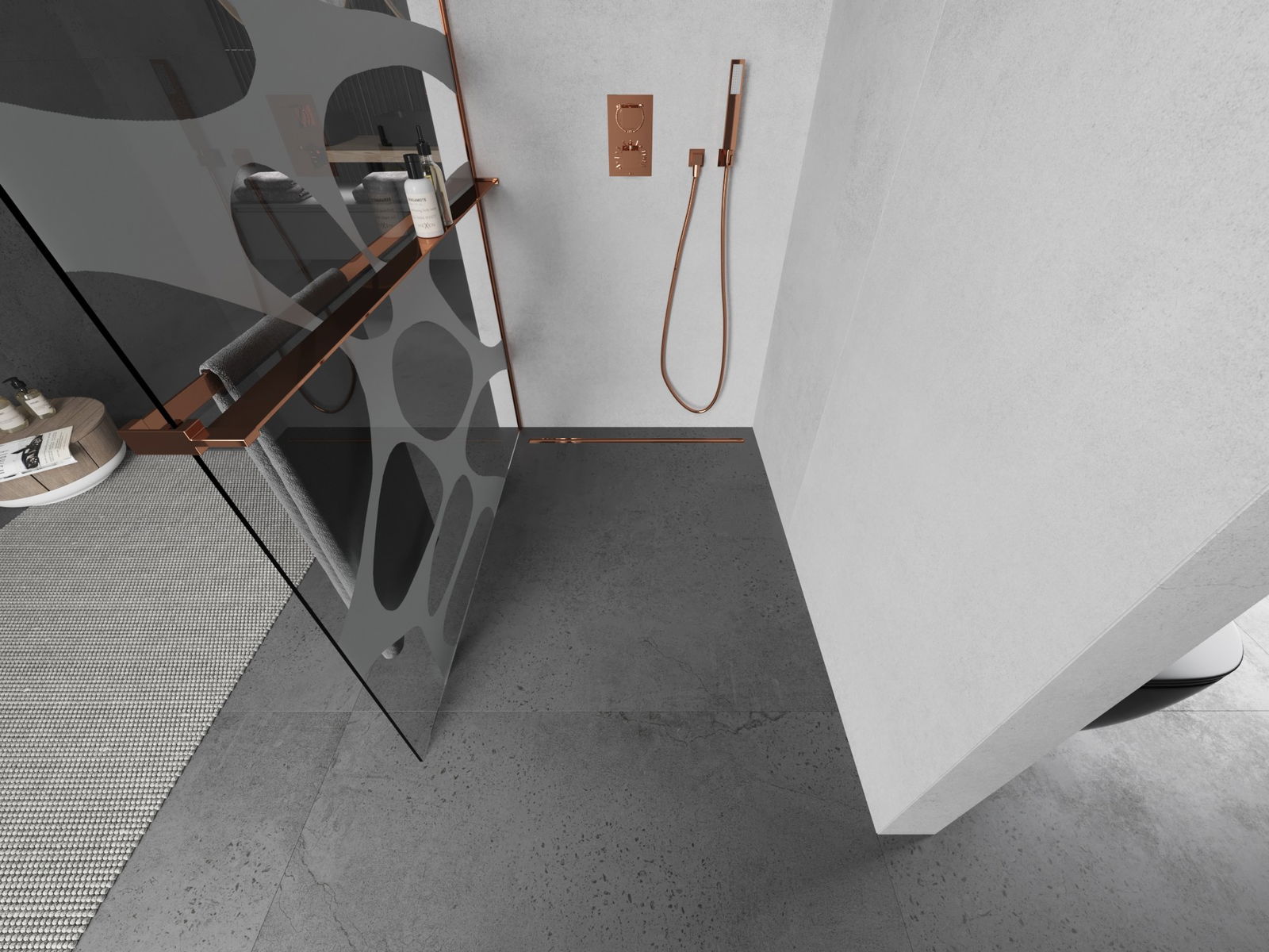 Mexen Kioto+ L douchewand met plank Walk-in 70 x 200 cm, witte golf, roze goud - 800-070-123-60-97