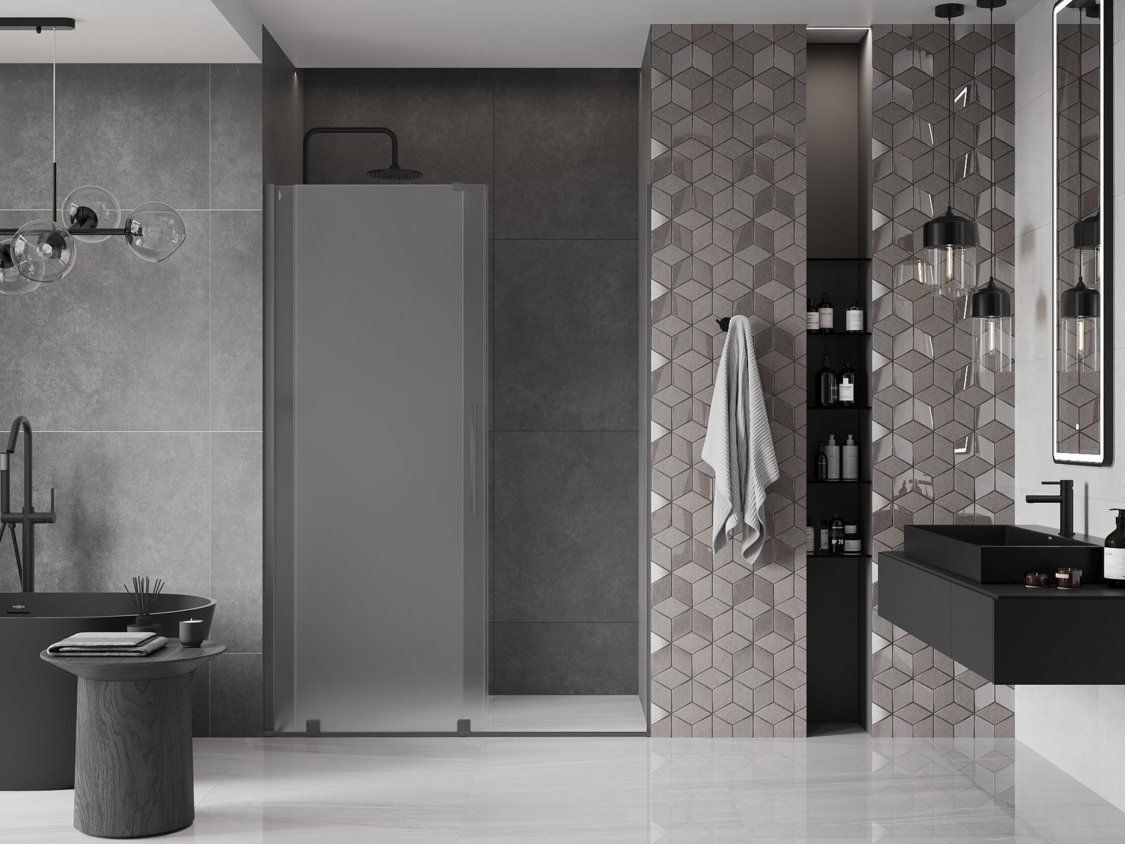 De handige en comfortabele handgreep is gemaakt van roestvrij staal. De modieuze vorm, gecombineerd met een afwerking die qua kleur aansluit bij de profielen, geeft het geheel een moderne en stijlvolle uitstraling en versterkt de esthetiek van elke badkamer.