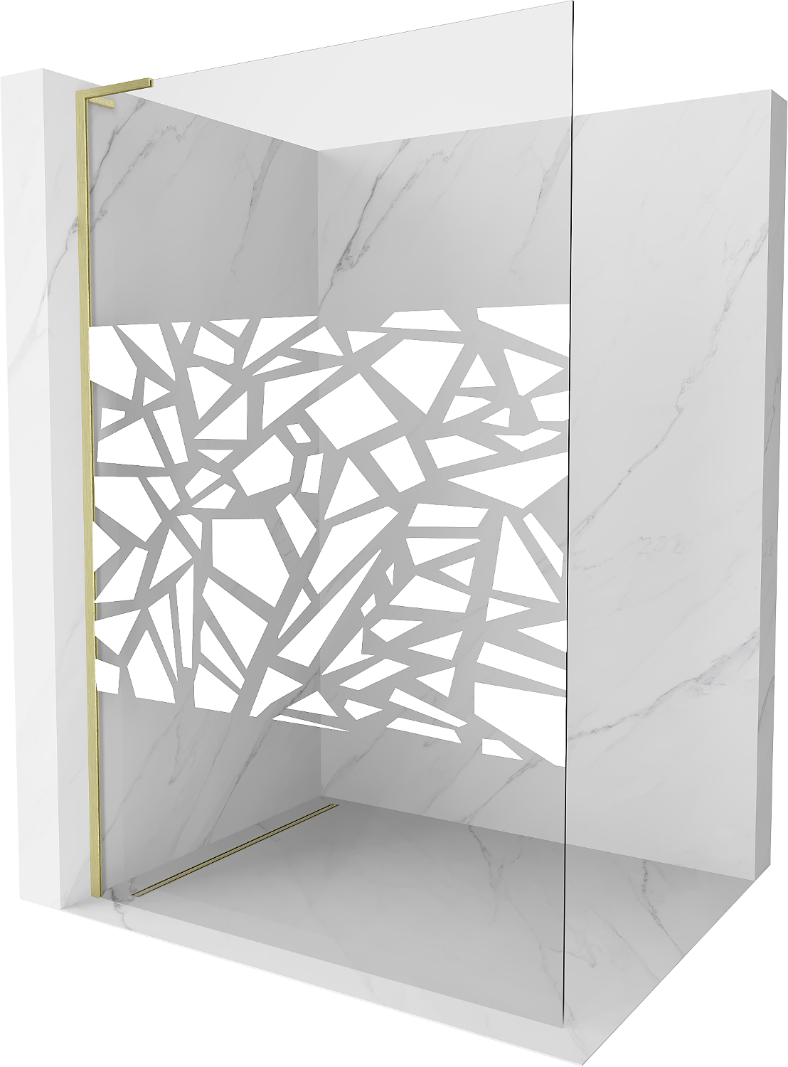 Mexen Kioto L douchewand Walk-in 90 x 200 cm, wit patroon, geborsteld goud - 800-090-103-55-85