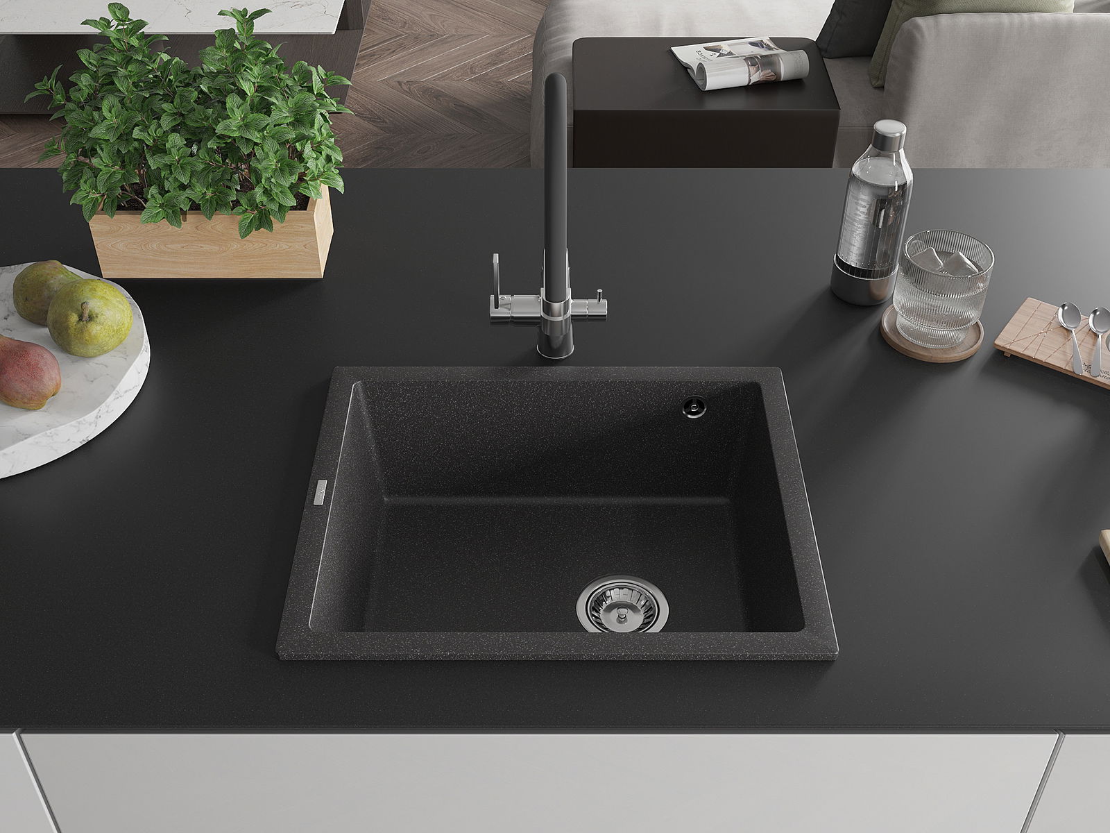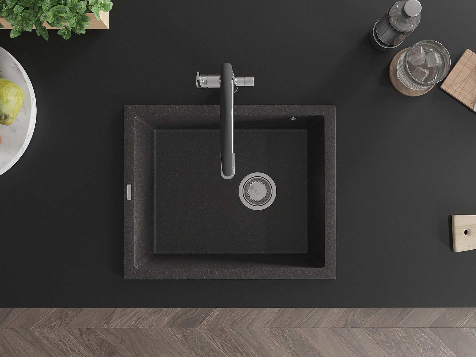 Mexen Pedro granieten spoelbak 1-komorig 560 x 460 mm, zwart gespikkeld, chromen sifon - 6508561000-76