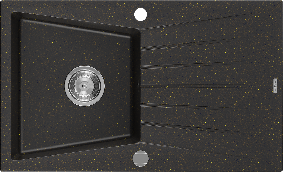 Mexen Cesar granieten spoelbak 1-komorig met afdruiprek 775 x 470 mm, zwart/goud metallic, chroom sifon - 6514771010-75
