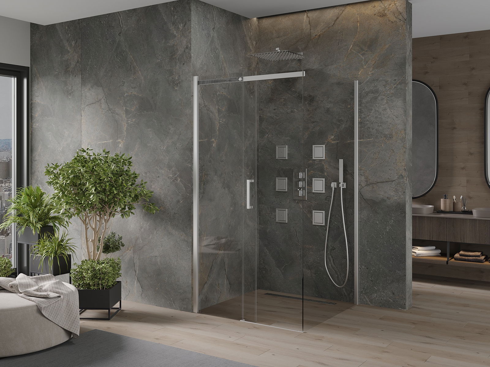 Schuifdeuren bewegen op speciale geleiders en hebben geen extra ruimte nodig om te openen, waardoor ze ideaal zijn voor kleinere badkamers. Dubbele rollen met een metalen frame zorgen voor een soepele beweging.