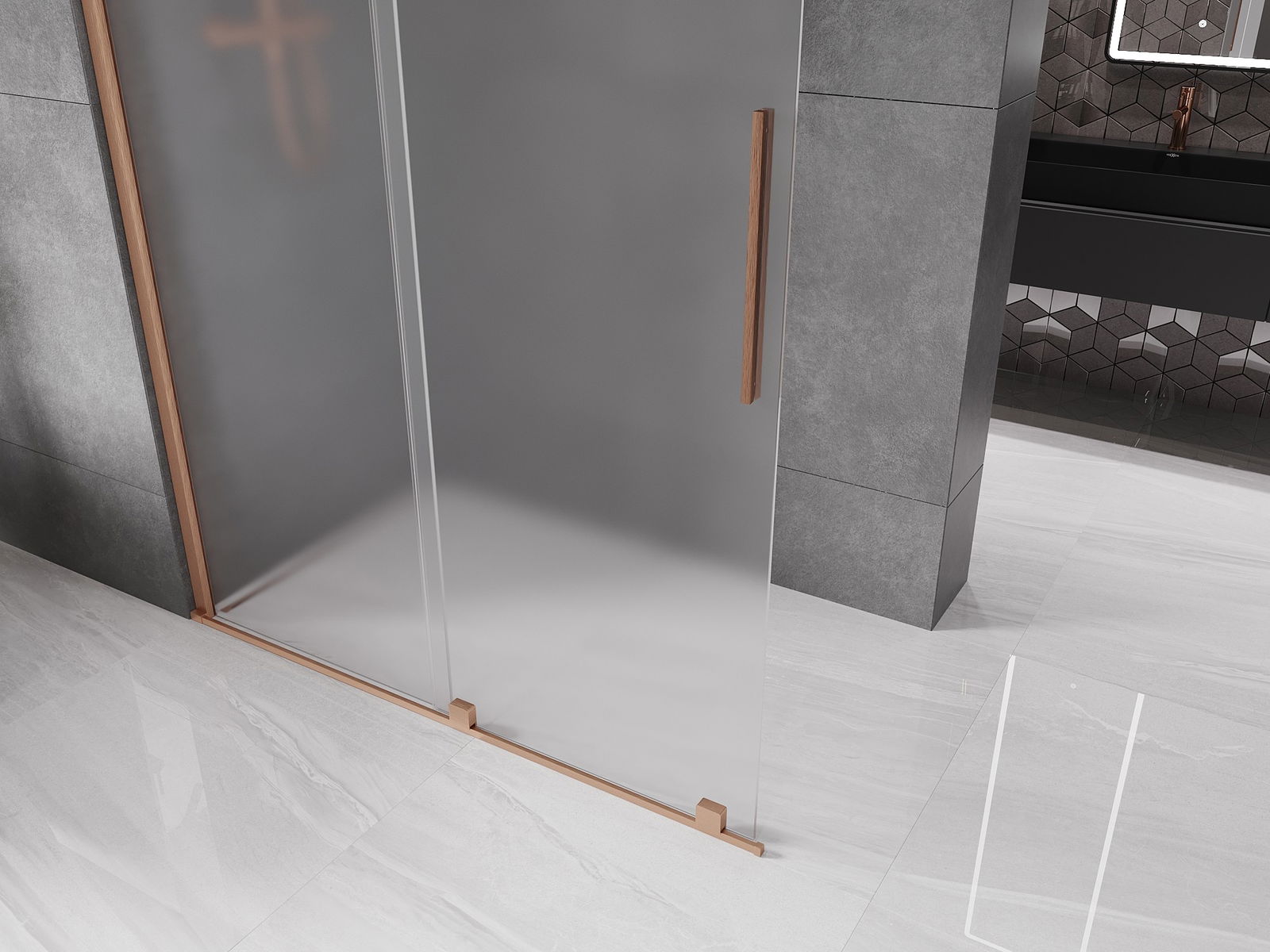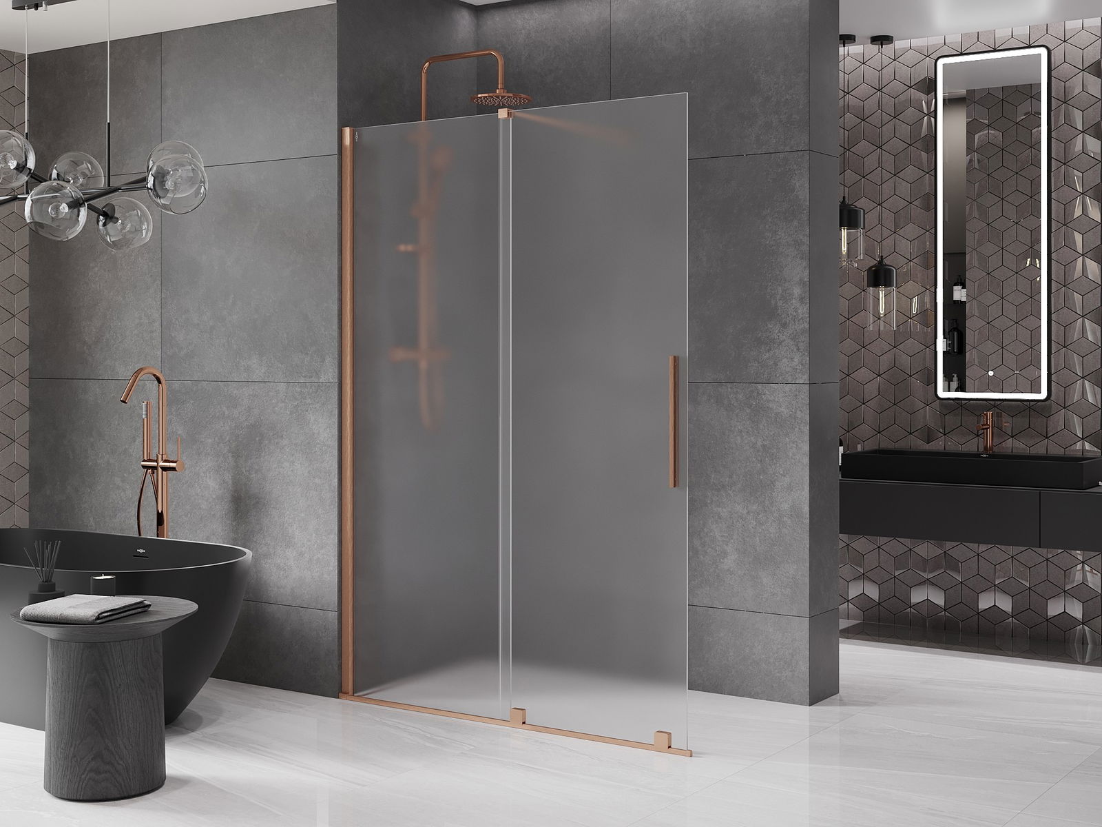 Mexen Velar schuifbare inloopdouchewand 140 x 200 cm, ijsglas 8 mm, geborsteld koper - 871-140-000-33-65