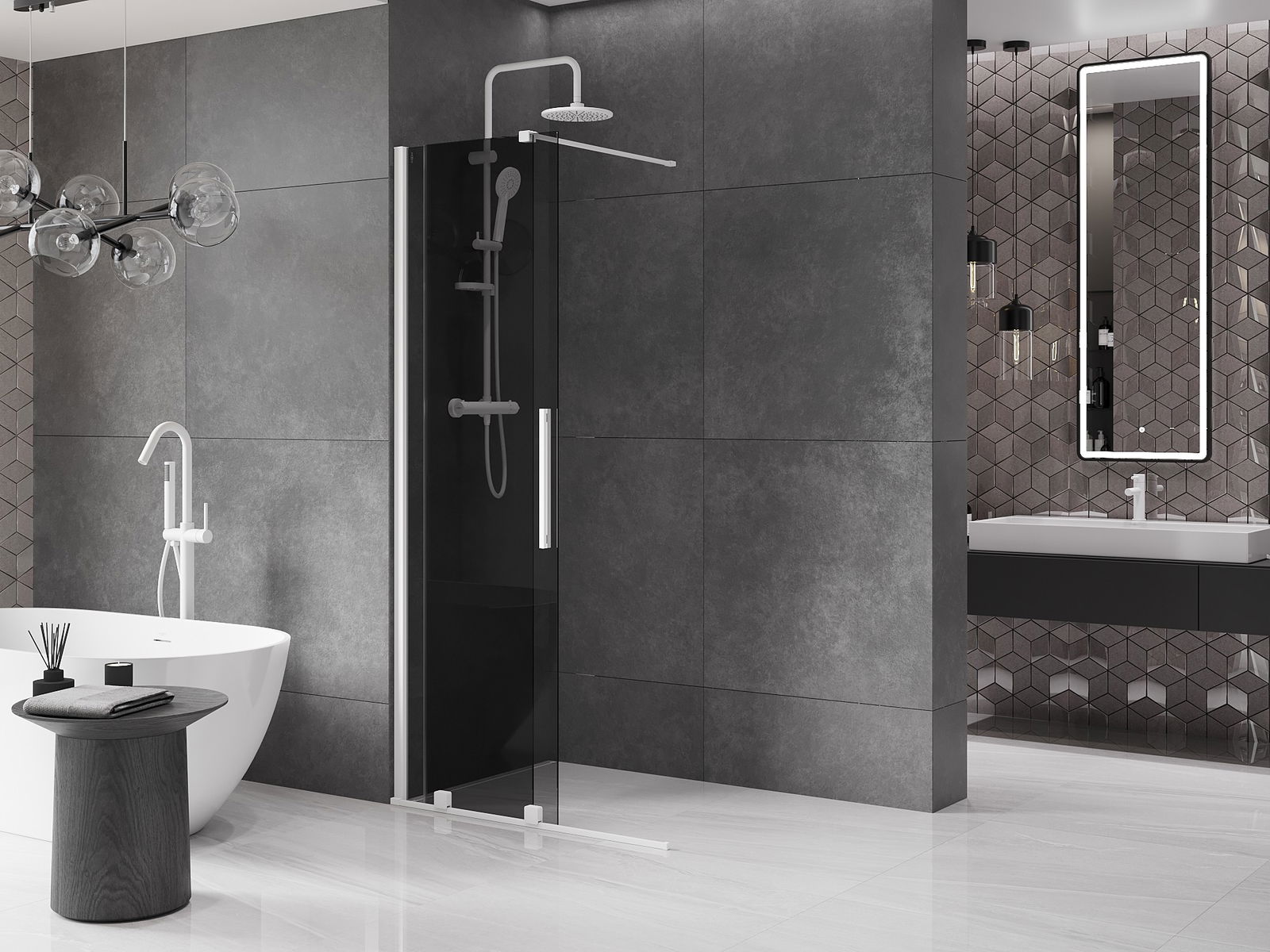 Het handige en comfortabele handvat is gemaakt van roestvrij staal. De modieuze vorm in combinatie met de afwerking die is afgestemd op de kleur van de profielen geeft het geheel een moderne en stijlvolle uitstraling, en benadrukt de esthetiek van elke badkamer.