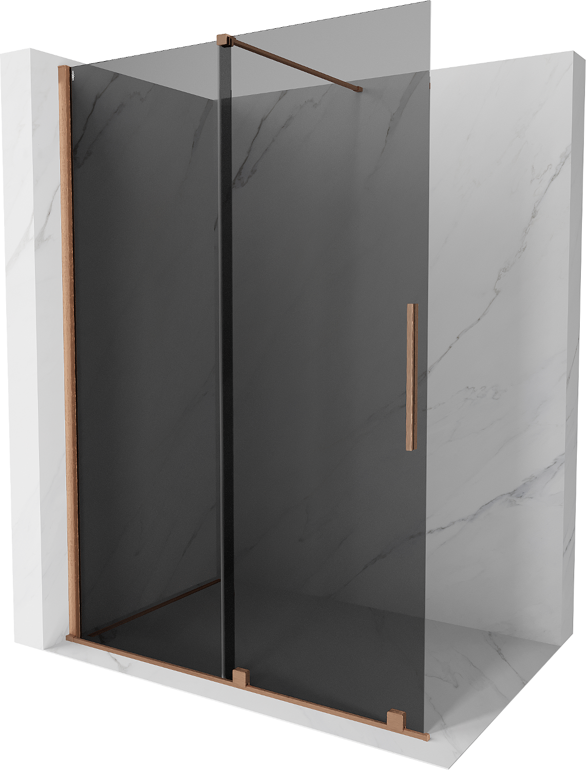Mexen Velar schuifbare douchewand Walk-in 150 x 200 cm, grafiet 8 mm, geborsteld koper - 871-150-000-43-65