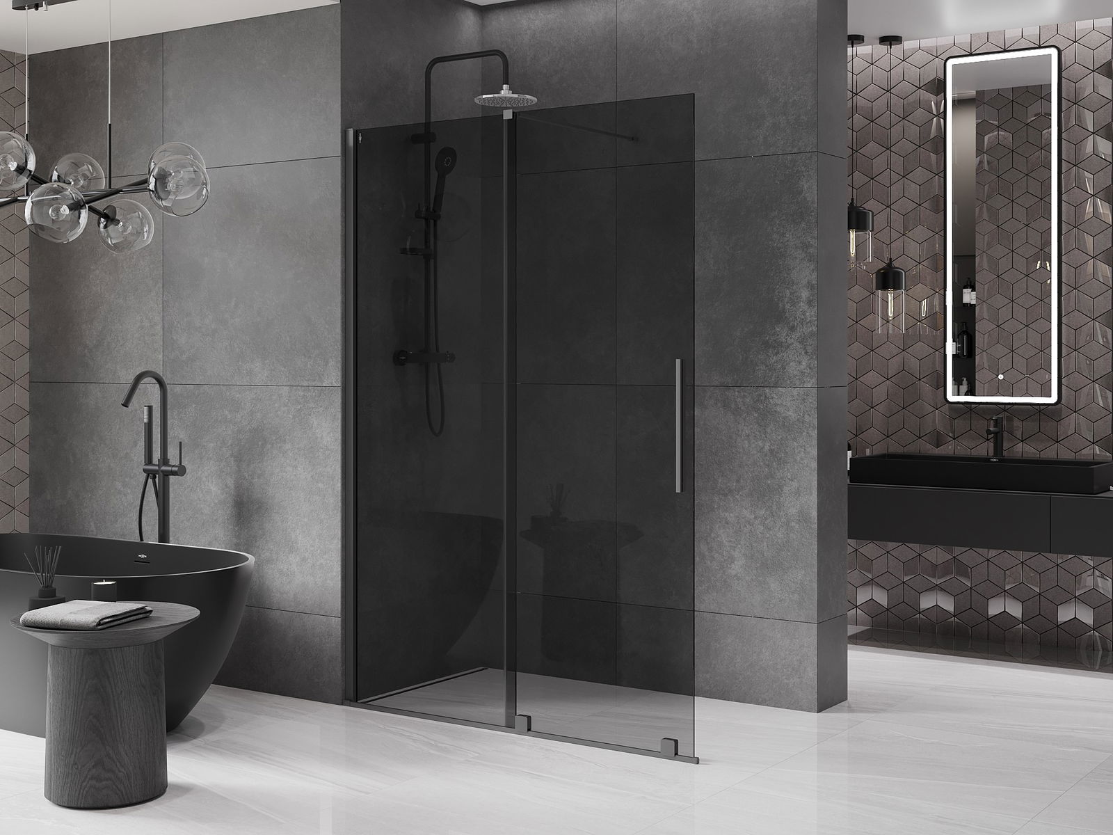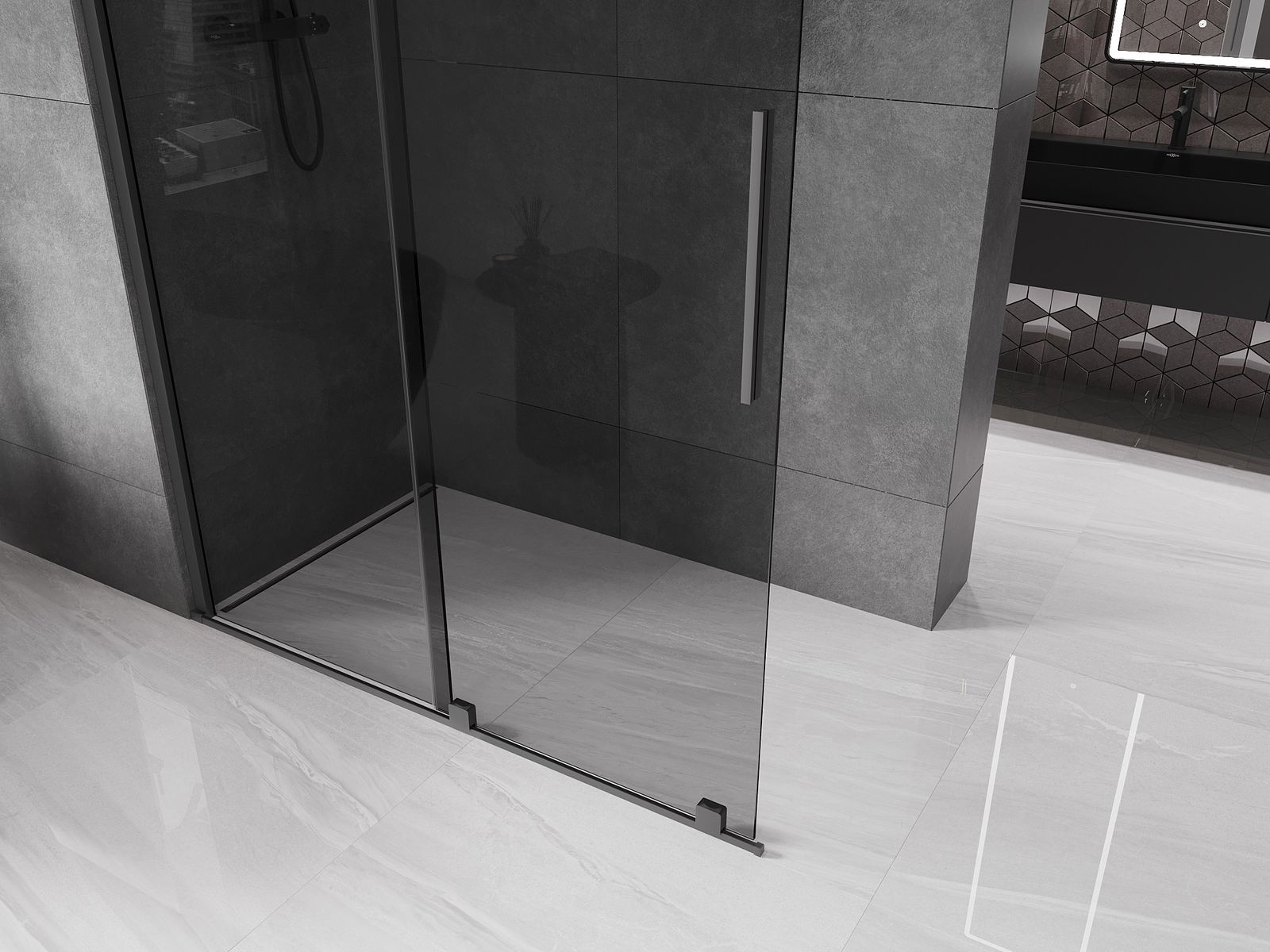 De handige en comfortabele handgreep is gemaakt van roestvrij staal. De modieuze vorm, gecombineerd met een afwerking die qua kleur aansluit bij de profielen, geeft het geheel een moderne en stijlvolle uitstraling en versterkt de esthetiek van elke badkamer.