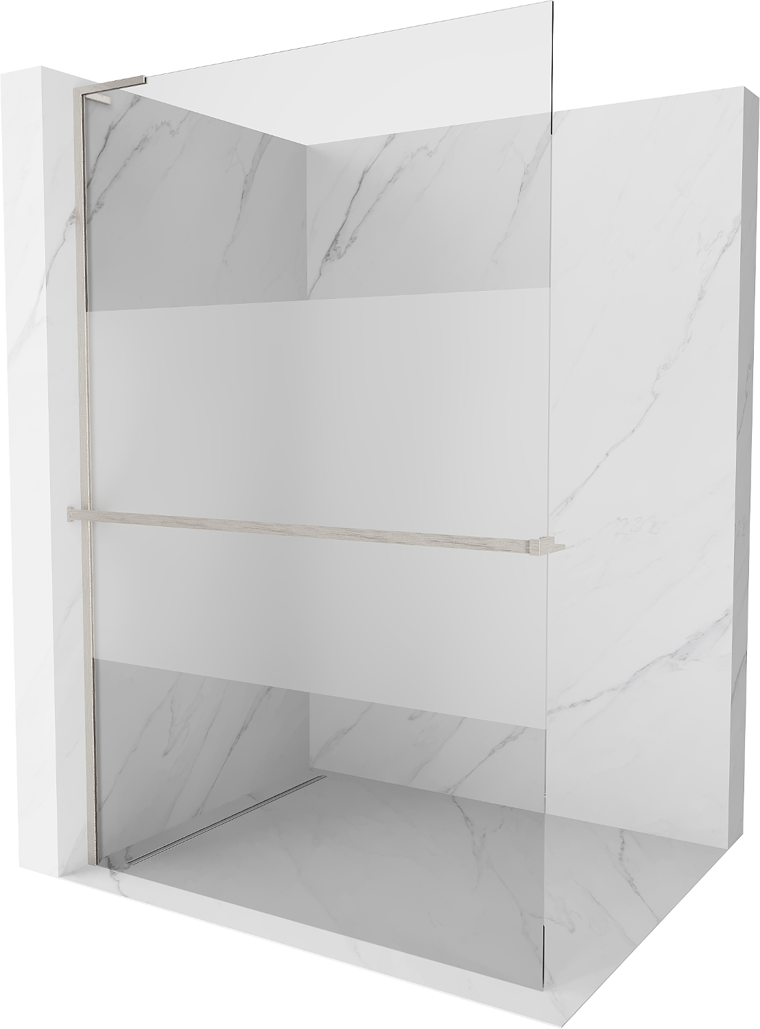 Mexen Kioto+ L douchewand met plank Walk-in 80 x 200 cm, transparant/matglas, geborsteld nikkel - 800-080-123-97-35
