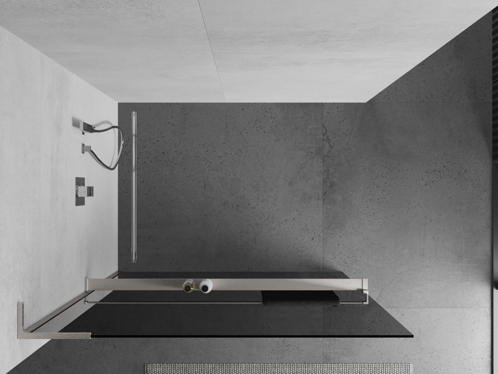 Mexen Kioto+ L douchewand met plank Walk-in 110 x 200 cm, grafiet, geborsteld nikkel - 800-110-123-97-40