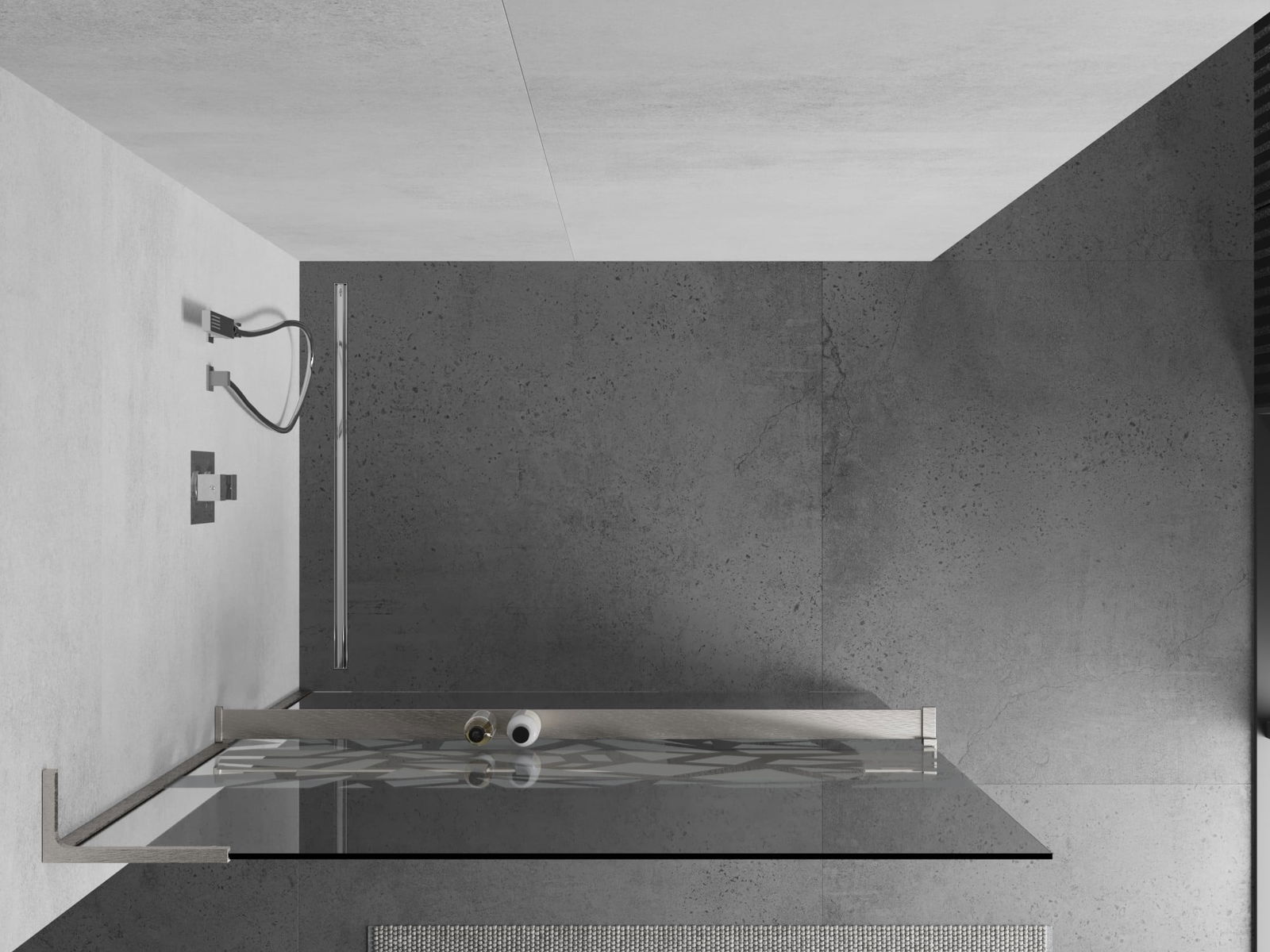 Mexen Kioto+ L Douchewand met plank Walk-in 100 x 200 cm, wit patroon, geborsteld nikkel - 800-100-123-97-85