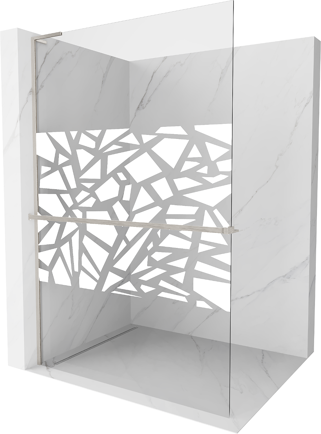 Mexen Kioto+ L douchescherm met plank Walk-in 110 x 200 cm, wit patroon, geborsteld nikkel - 800-110-123-97-85