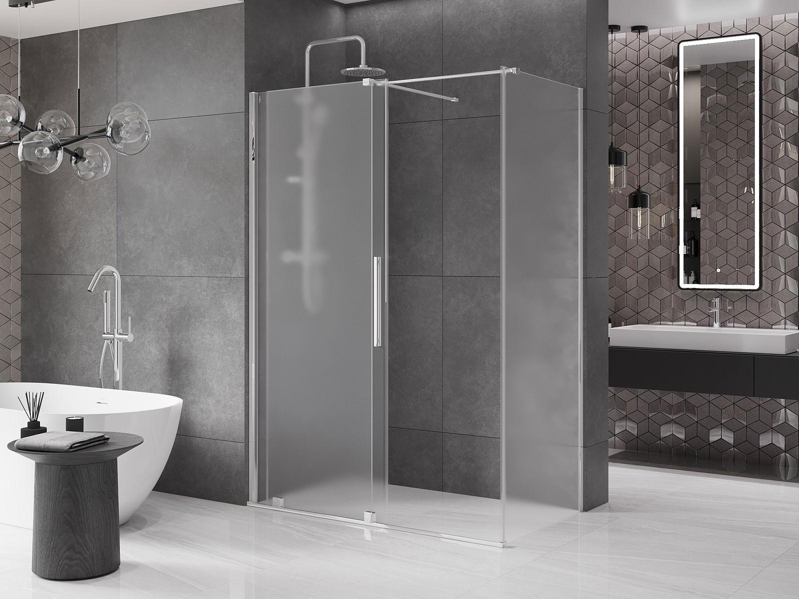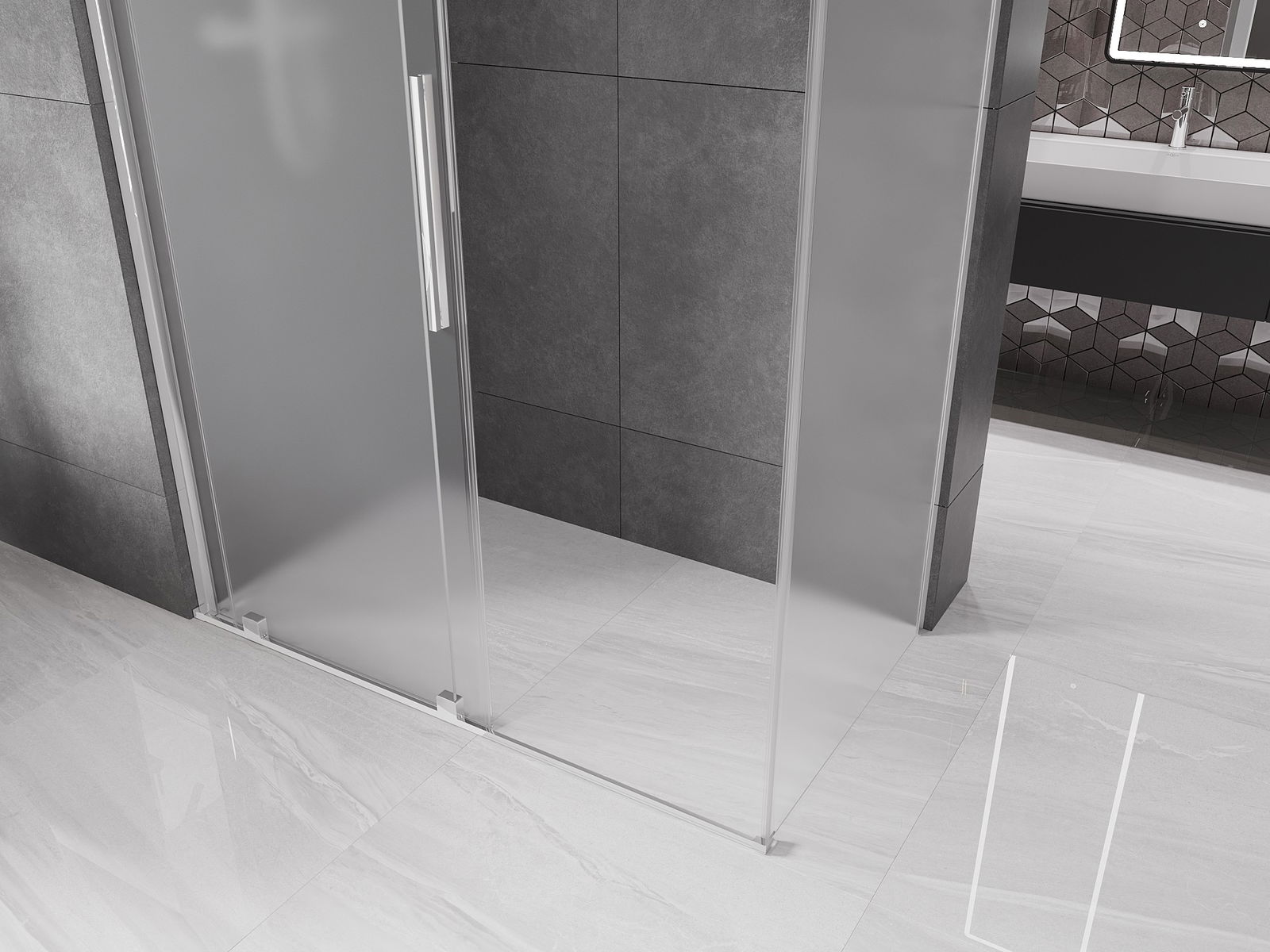 De handige en comfortabele handgreep is gemaakt van roestvrij staal. De modieuze vorm, gecombineerd met een afwerking die qua kleur aansluit bij de profielen, geeft het geheel een moderne en stijlvolle uitstraling en versterkt de esthetiek van elke badkamer.
