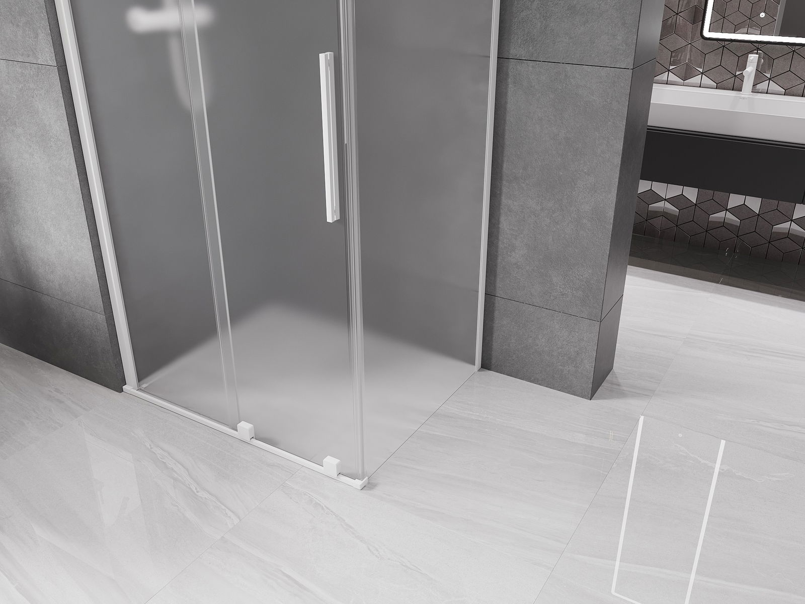 Het handige en comfortabele handvat is gemaakt van roestvrij staal. De modieuze vorm in combinatie met de afwerking die is afgestemd op de kleur van de profielen geeft het geheel een moderne en stijlvolle uitstraling, en benadrukt de esthetiek van elke badkamer.