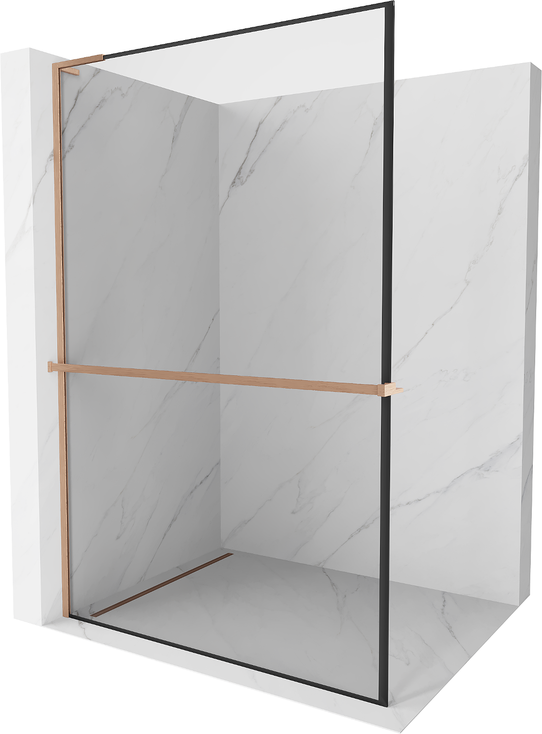 Mexen Kioto+ L douchewand met plank Walk-in 110 x 200 cm, zwart frame, geborsteld koper - 800-110-123-65-70