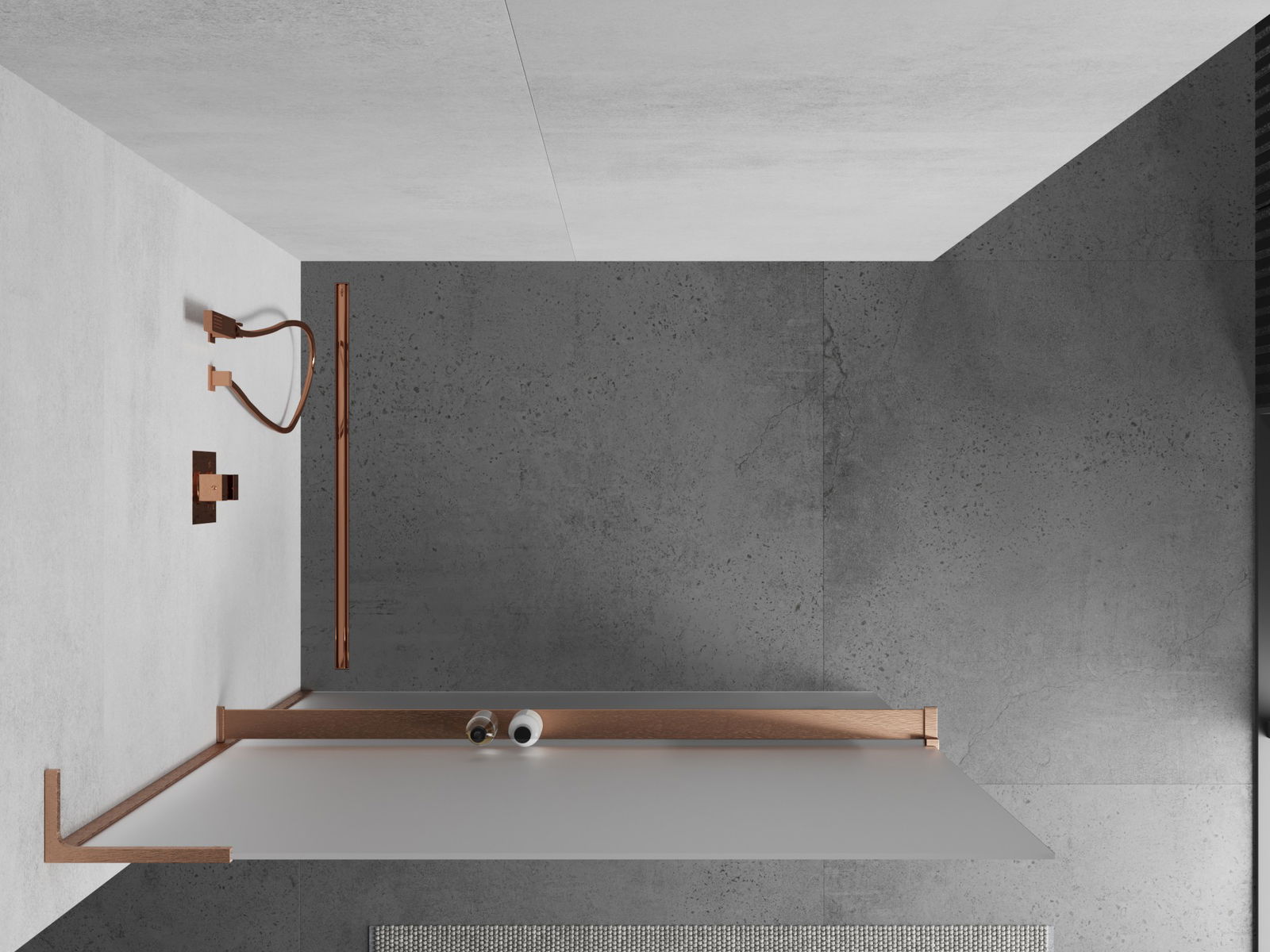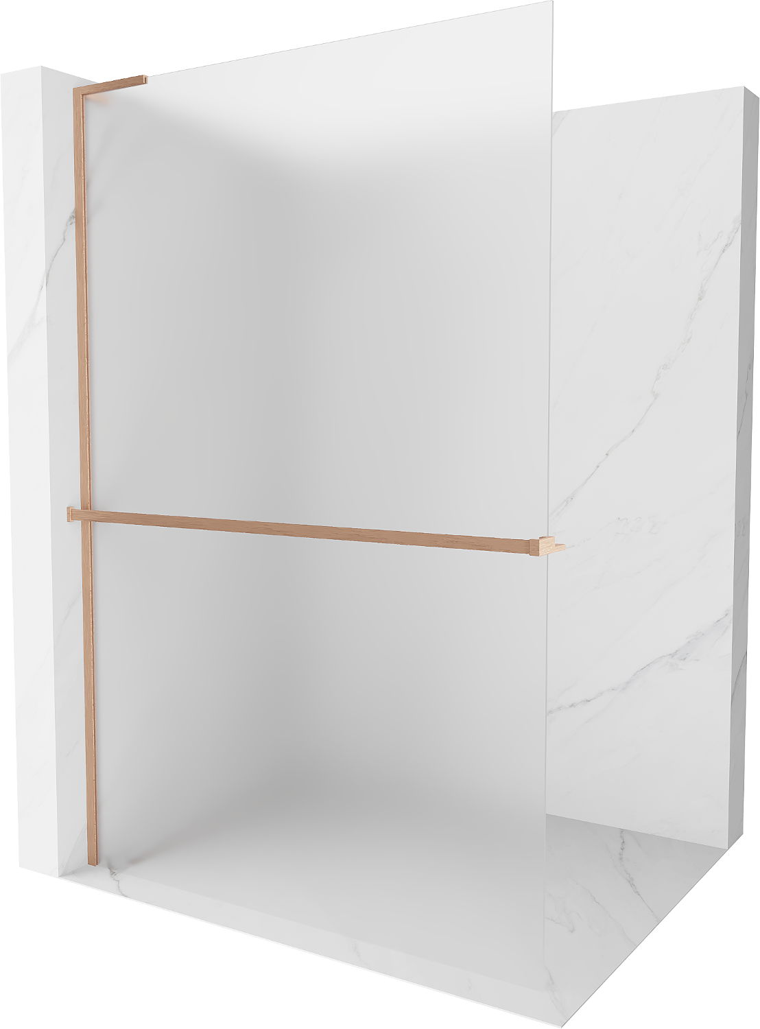 Mexen Kioto+ L douchewand met plank Walk-in 100 x 200 cm, ijsbloem, geborsteld koper - 800-100-123-65-30