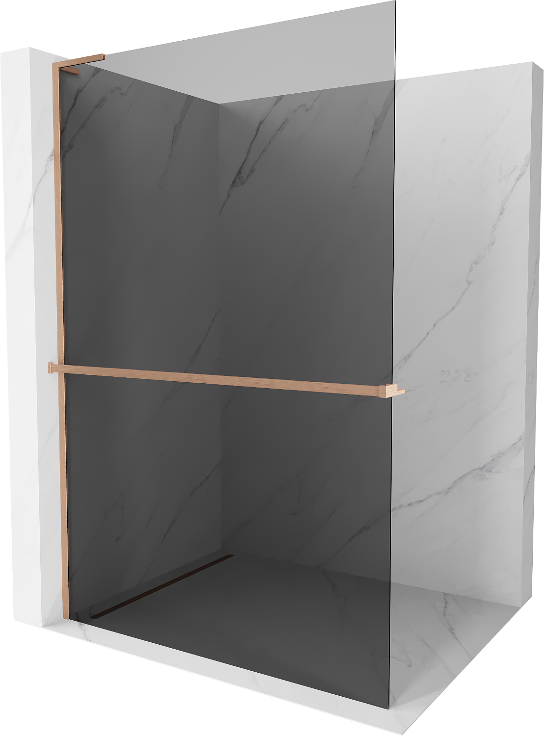 Mexen Kioto+ L douchewand met plank Walk-in 70 x 200 cm, grafiet, geborsteld koper - 800-070-123-65-40