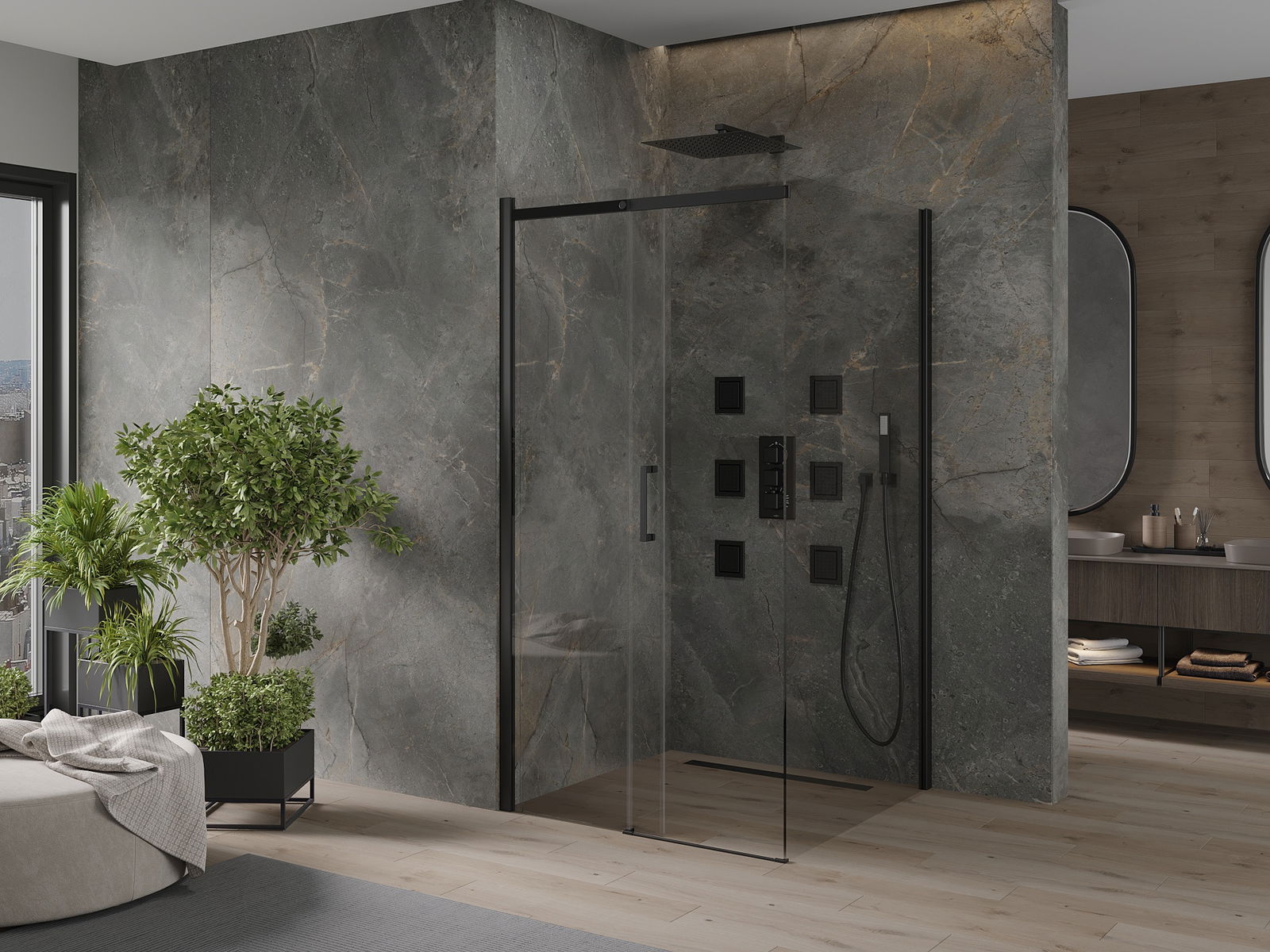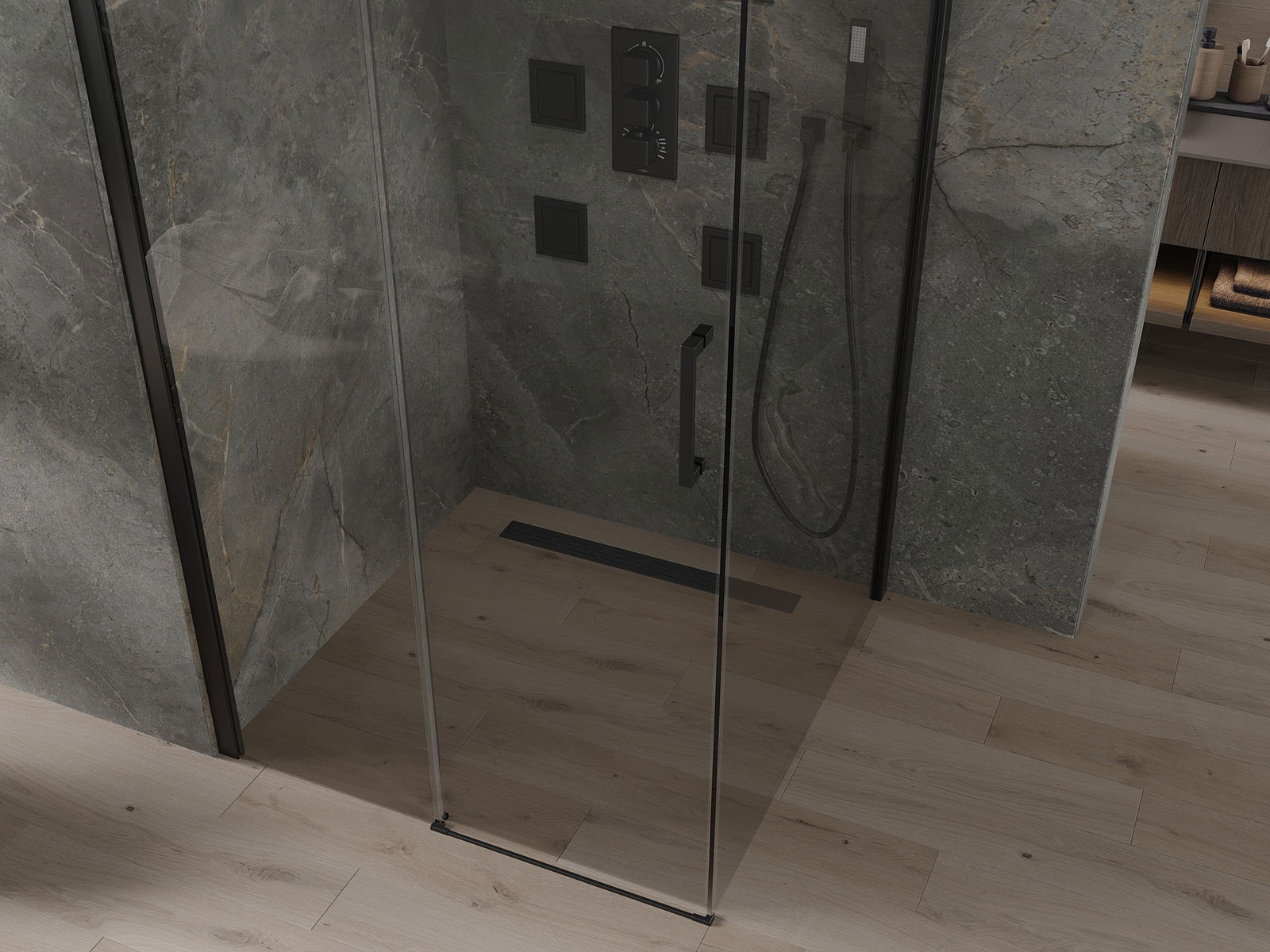 Schuifdeuren bewegen op speciale rails en hebben geen extra ruimte nodig om te openen, waardoor ze geschikt zijn voor kleinere badkamers. Dankzij dubbele metalen wielen is hun beweging soepel.
