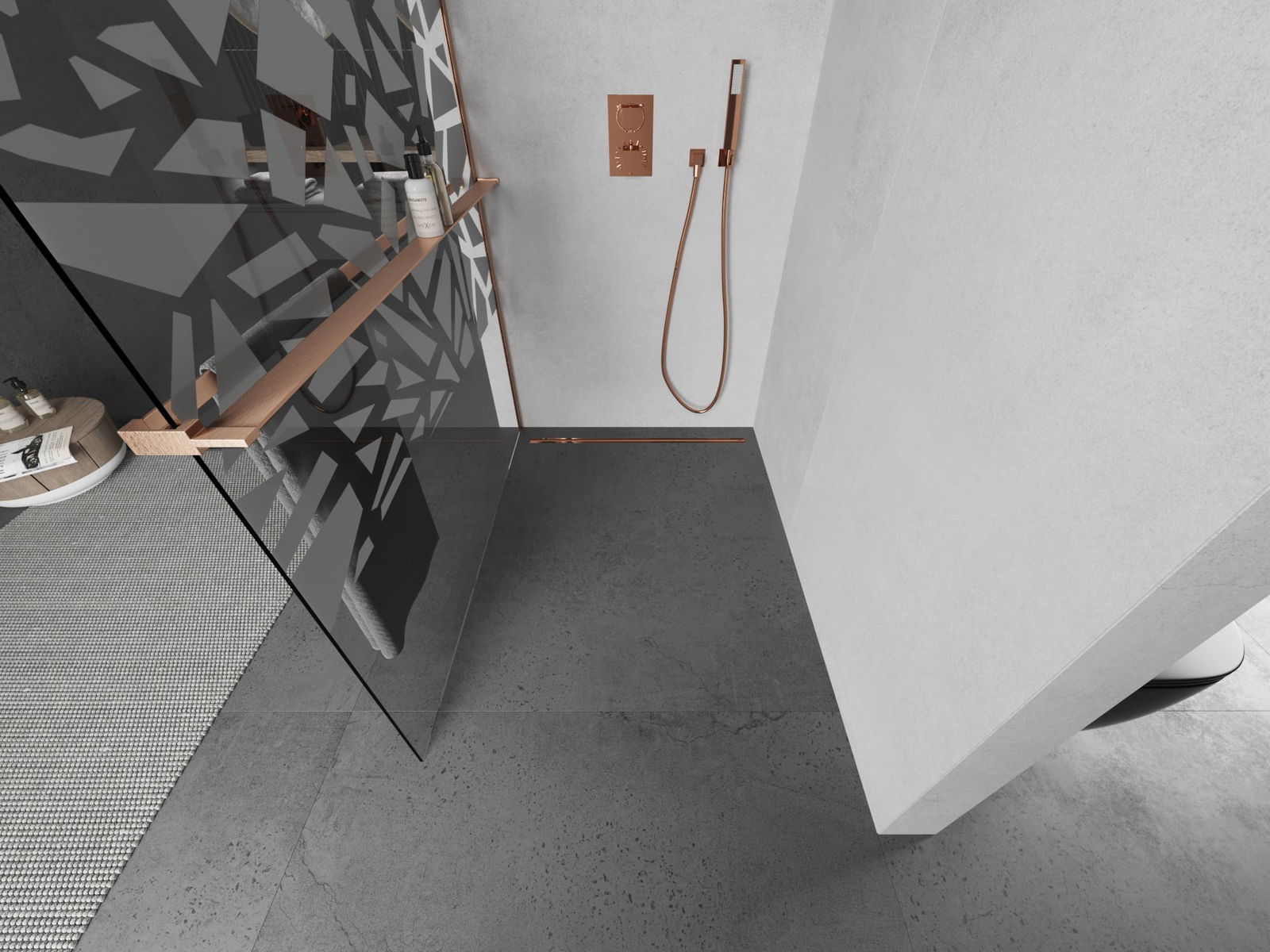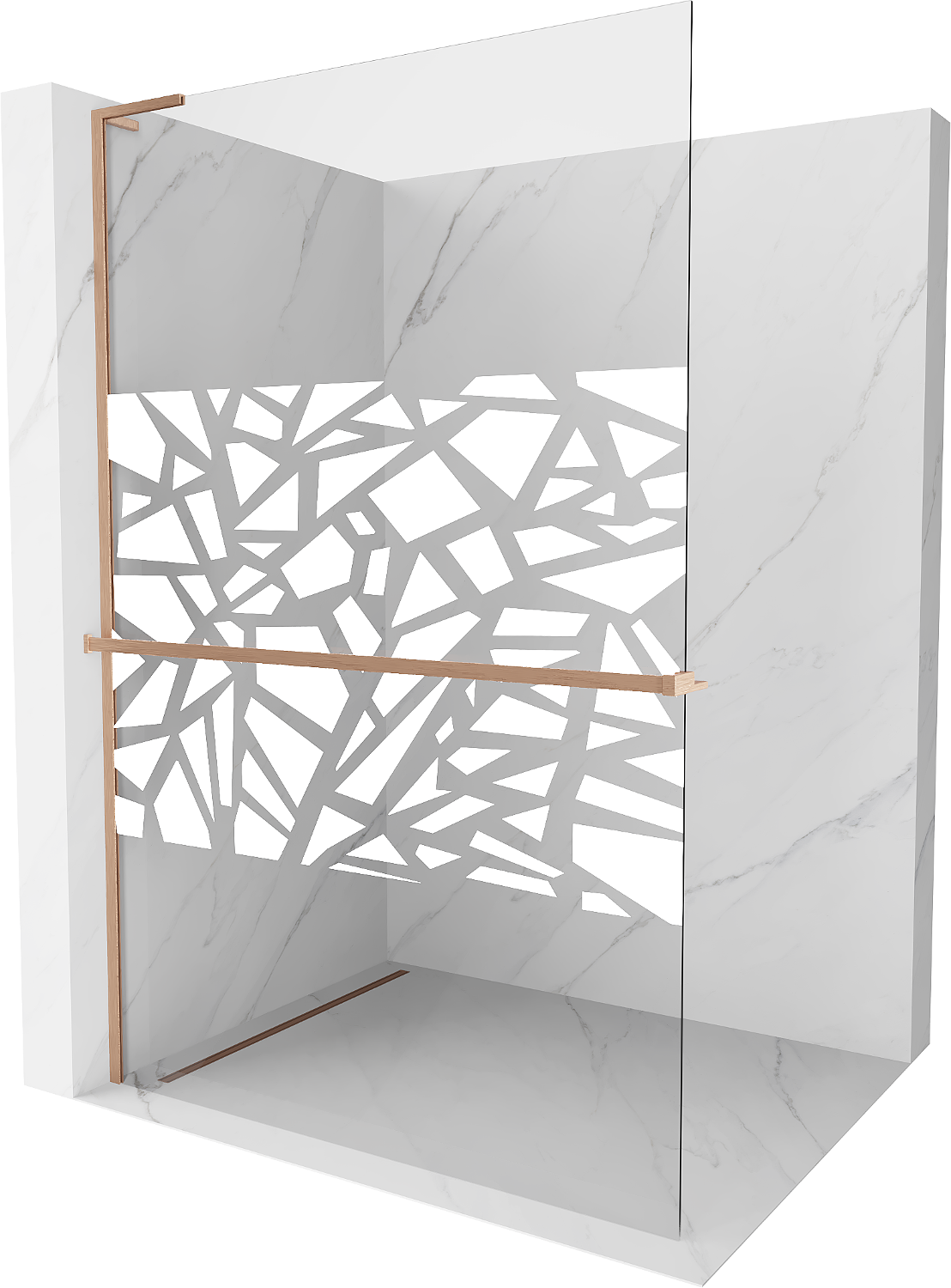 Mexen Kioto+ L Douchewand met plank Walk-in 120 x 200 cm, wit patroon, geborsteld koper - 800-120-123-65-85