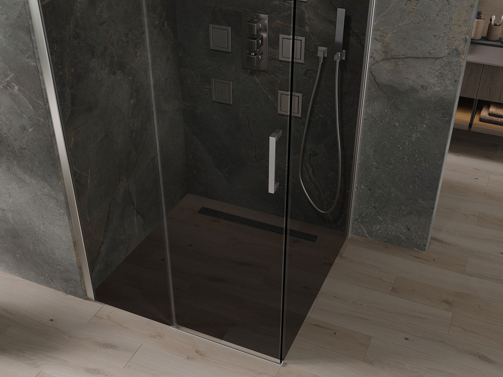 Schuifdeuren bewegen op speciale rails en hebben geen extra ruimte nodig om te openen, waardoor ze geschikt zijn voor kleinere badkamers. Dankzij dubbele metalen wielen is hun beweging soepel.