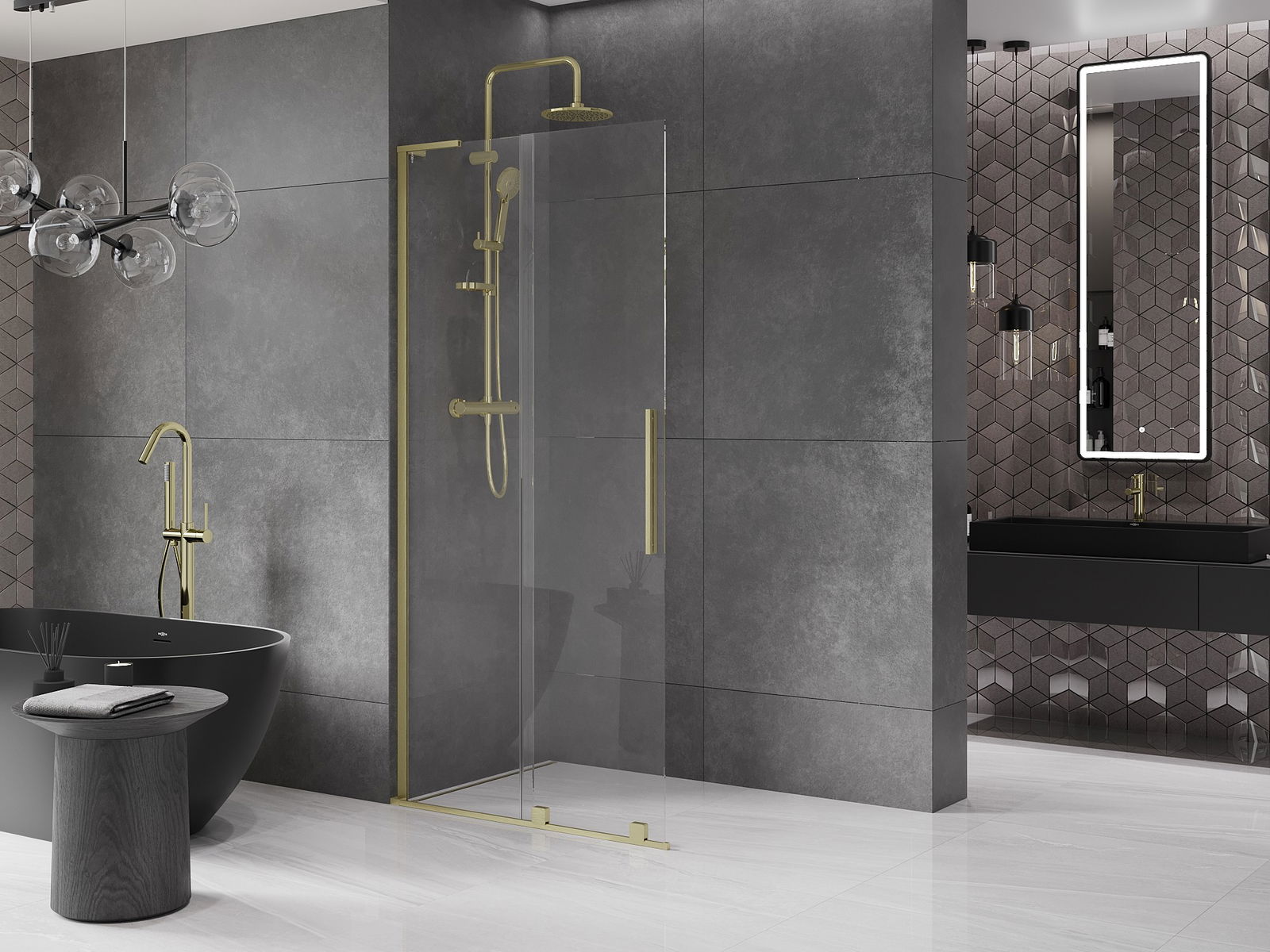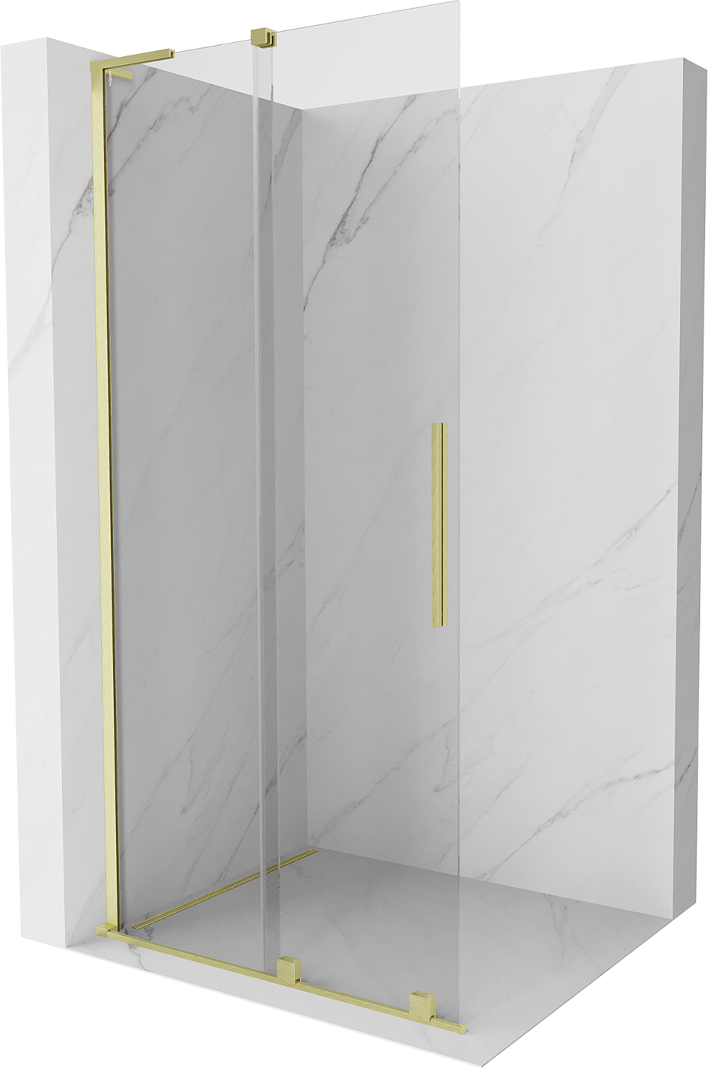 Mexen Velar L schuifbare inloopdouchewand 100 x 200 cm, transparant 8 mm, geborsteld goud - 871-100-003-03-55