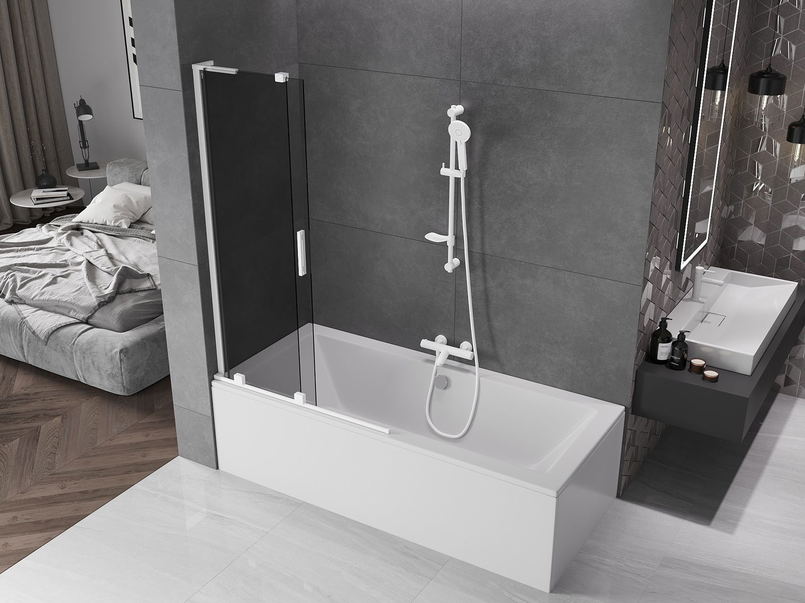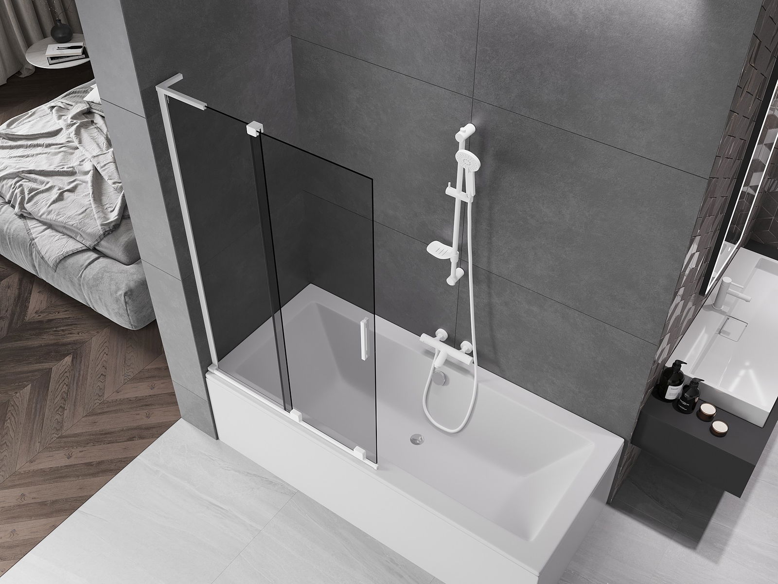 Mexen Velar L badwand tweevleugelige schuifbare 100 x 150 cm, grafiet, wit - 896-100-003-41-20