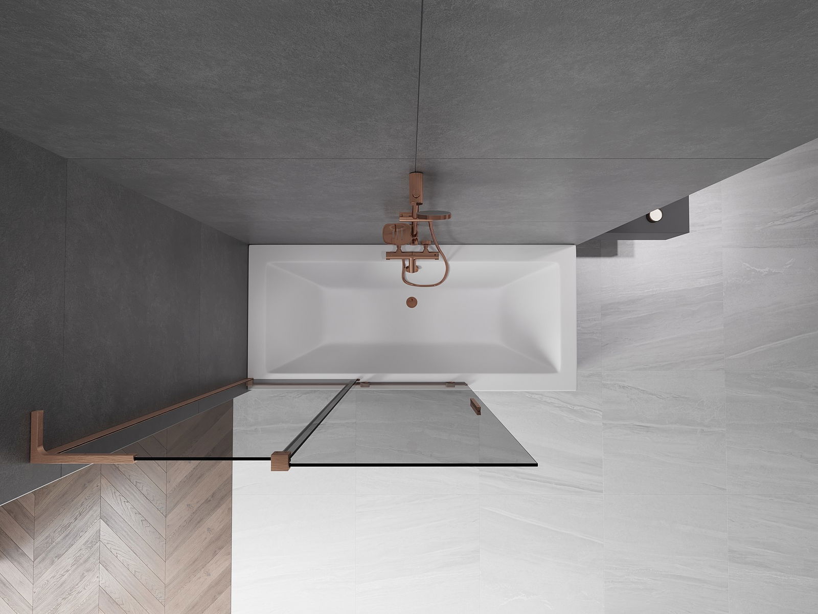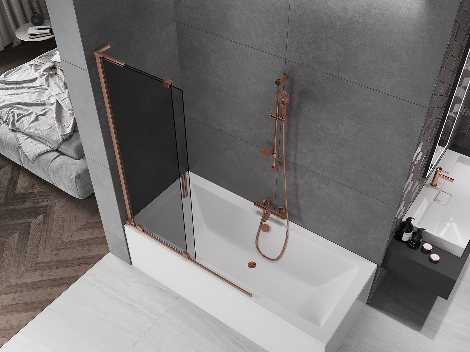 Mexen Velar L badwand 2-vleugelig schuifbaar 120 x 150 cm, grafiet, geborsteld koper - 896-120-003-41-65