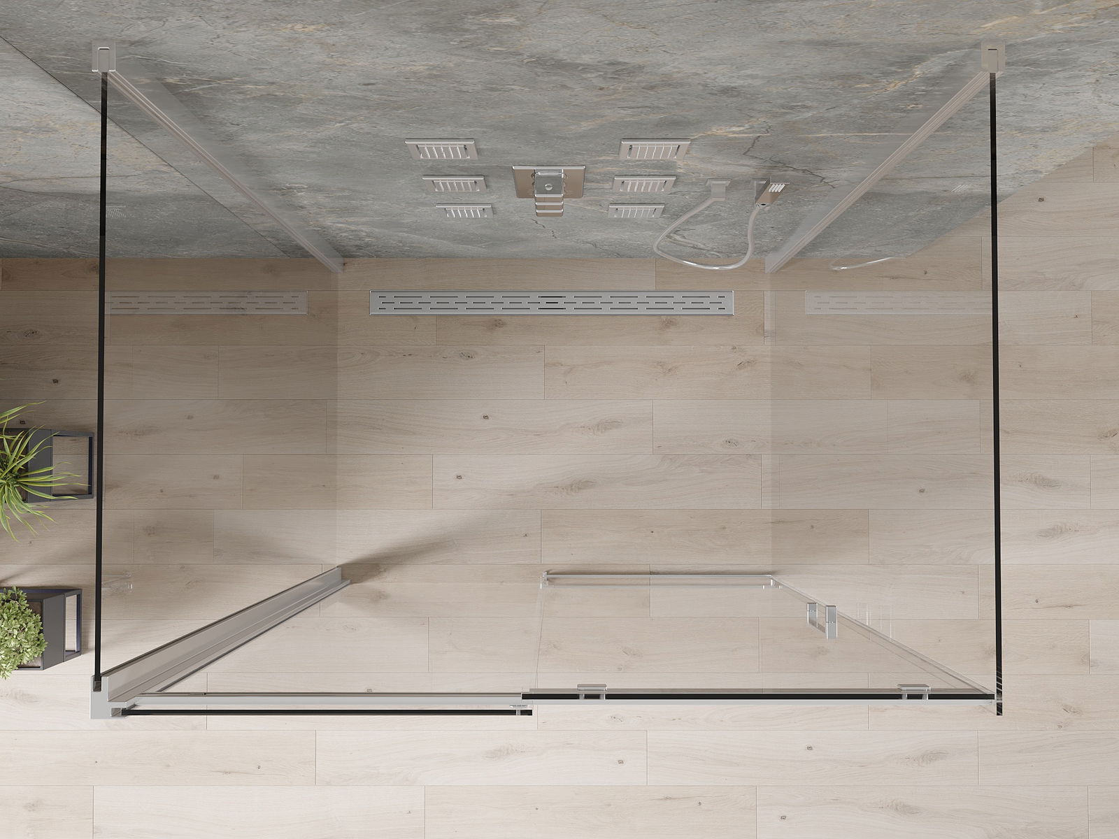 Schuifdeuren bewegen op speciale rails en hebben geen extra ruimte nodig om te openen, waardoor ze geschikt zijn voor kleinere badkamers. Dankzij dubbele metalen wielen is hun beweging soepel.
