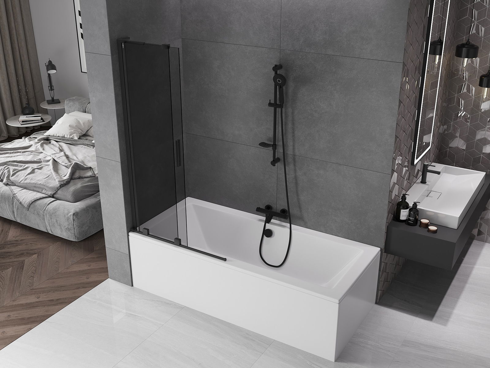 Mexen Velar L badwandpaneel tweedelig schuifbaar 90 x 150 cm, grafiet, zwart - 896-090-003-41-70