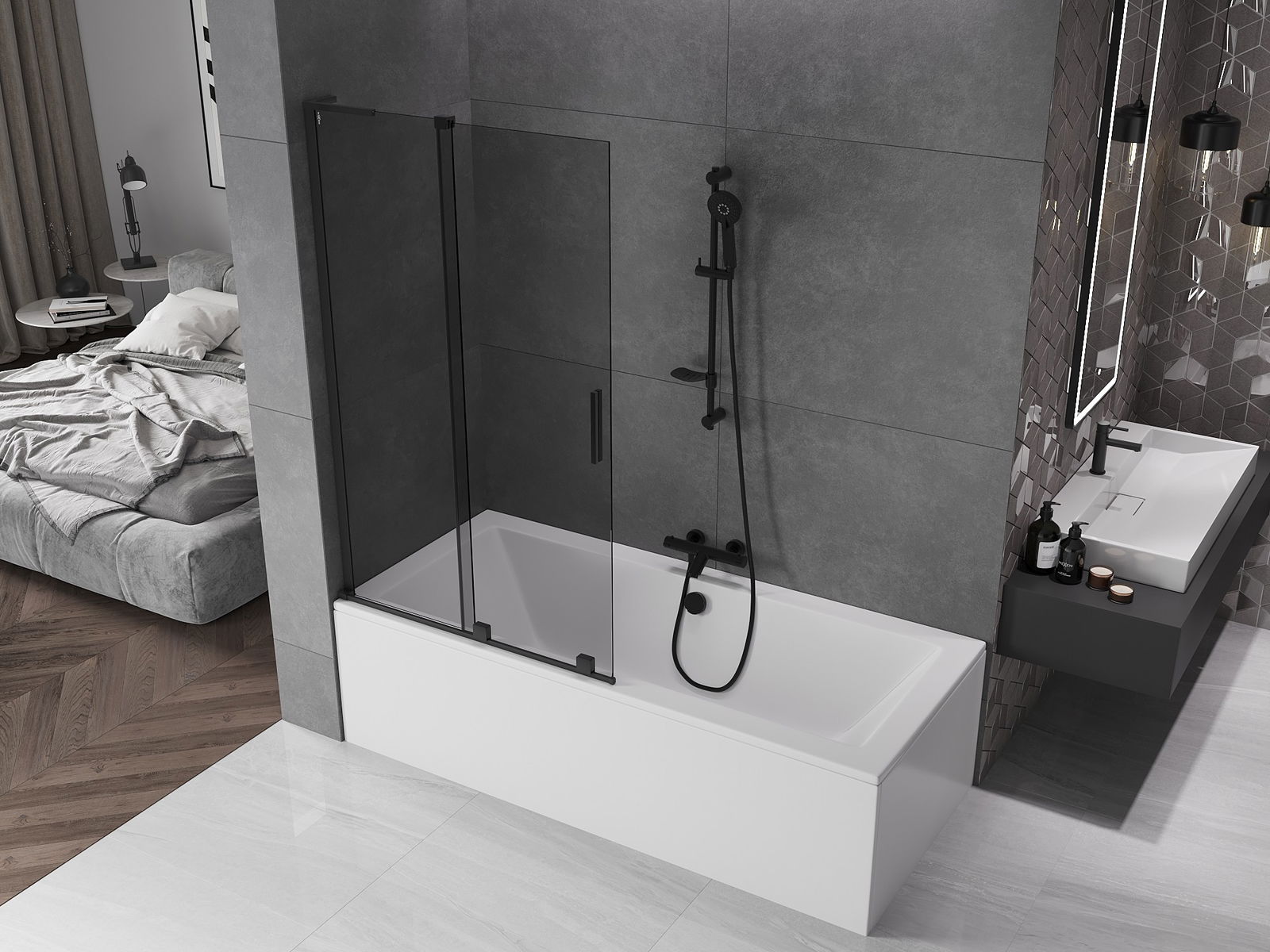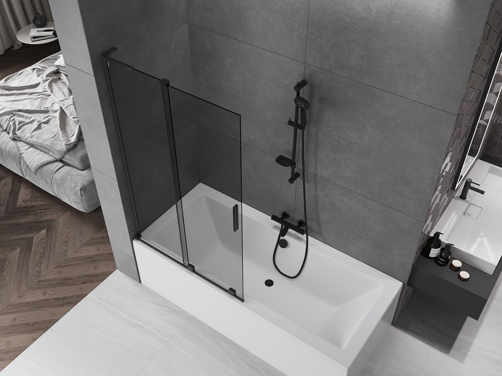Mexen Velar L badwand 2-delige schuif 100 x 150 cm, grafiet, zwart - 896-100-003-41-70