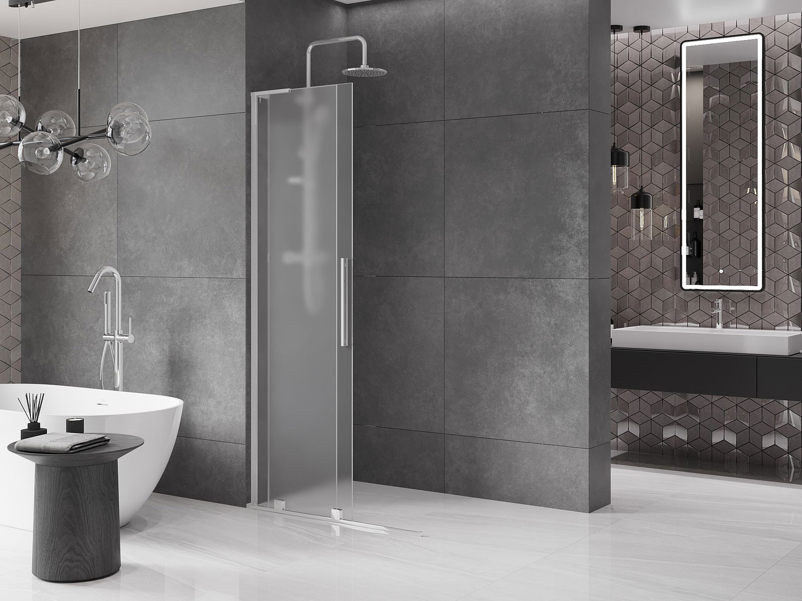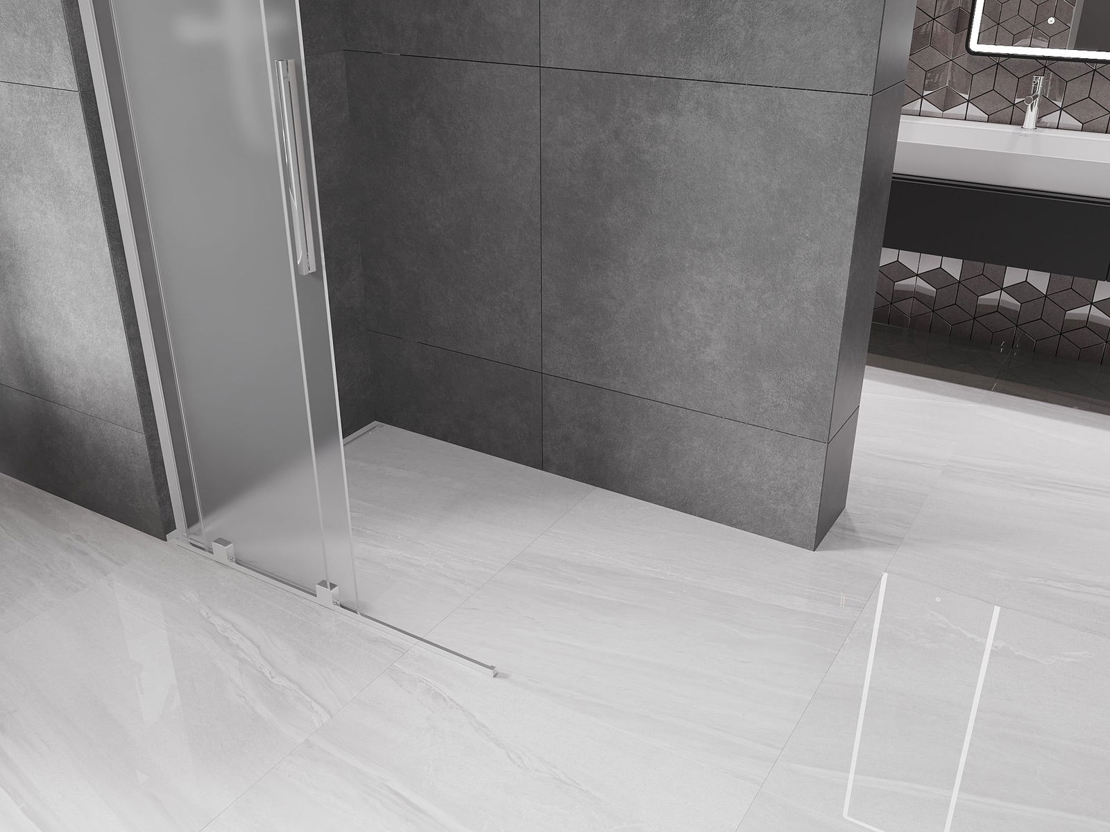Mexen Velar L schuifbare douchewand Walk-in 90 x 200 cm, matglas 8 mm, chroom - 871-090-003-33-01