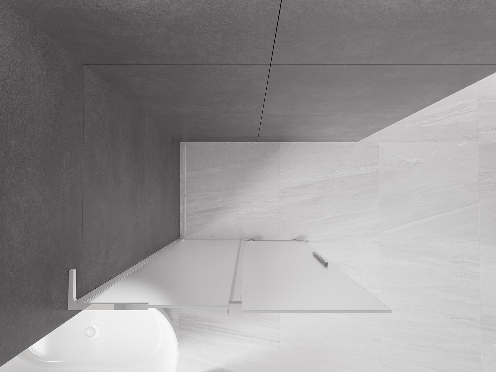 Het handige en comfortabele handvat is gemaakt van roestvrij staal. De modieuze vorm in combinatie met de afwerking die is afgestemd op de kleur van de profielen geeft het geheel een moderne en stijlvolle uitstraling, en benadrukt de esthetiek van elke badkamer.
