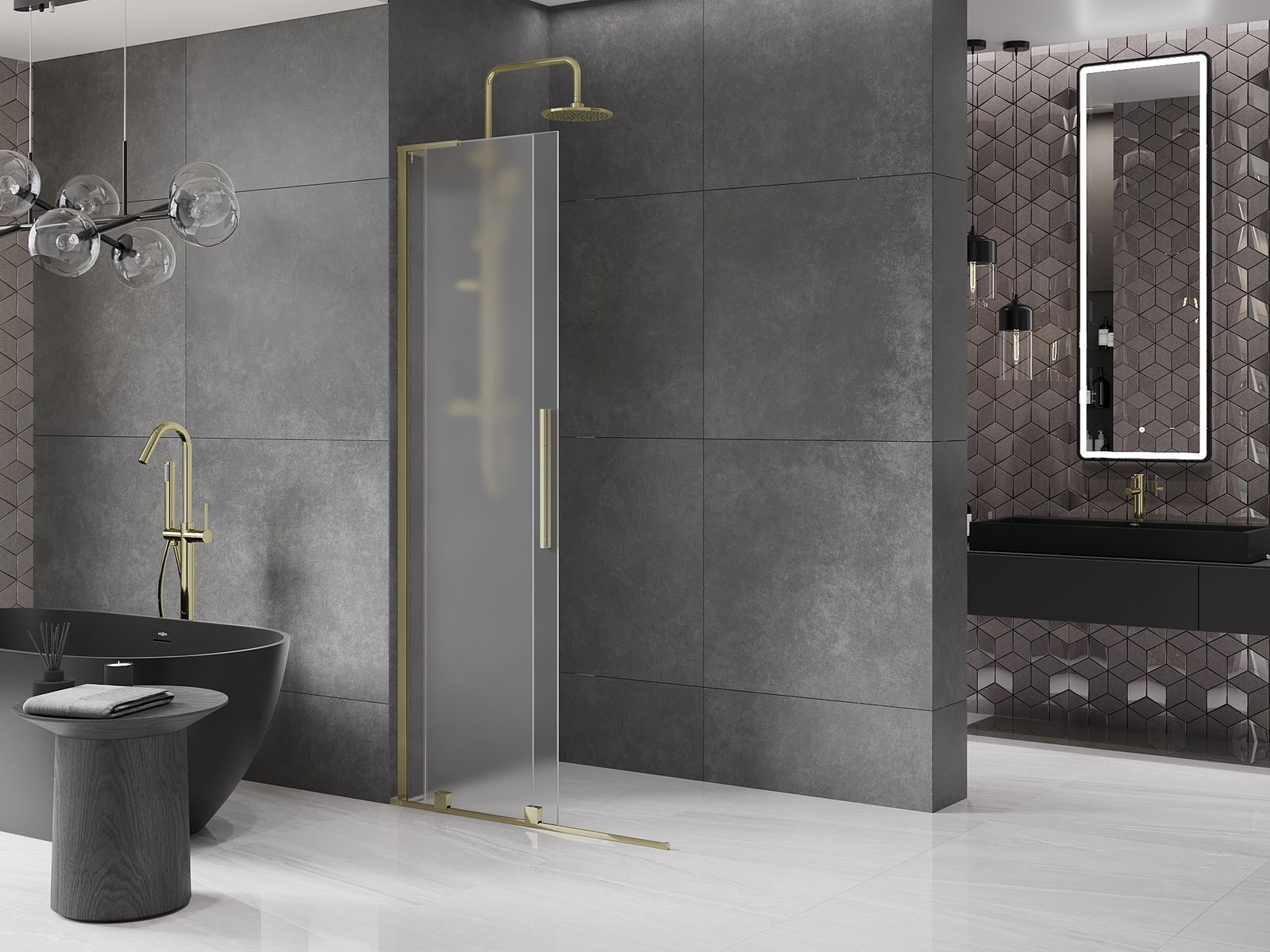 Mexen Velar L schuifbare douchewand Walk-in 90 x 200 cm, matglas 8 mm, goud - 871-090-003-33-50