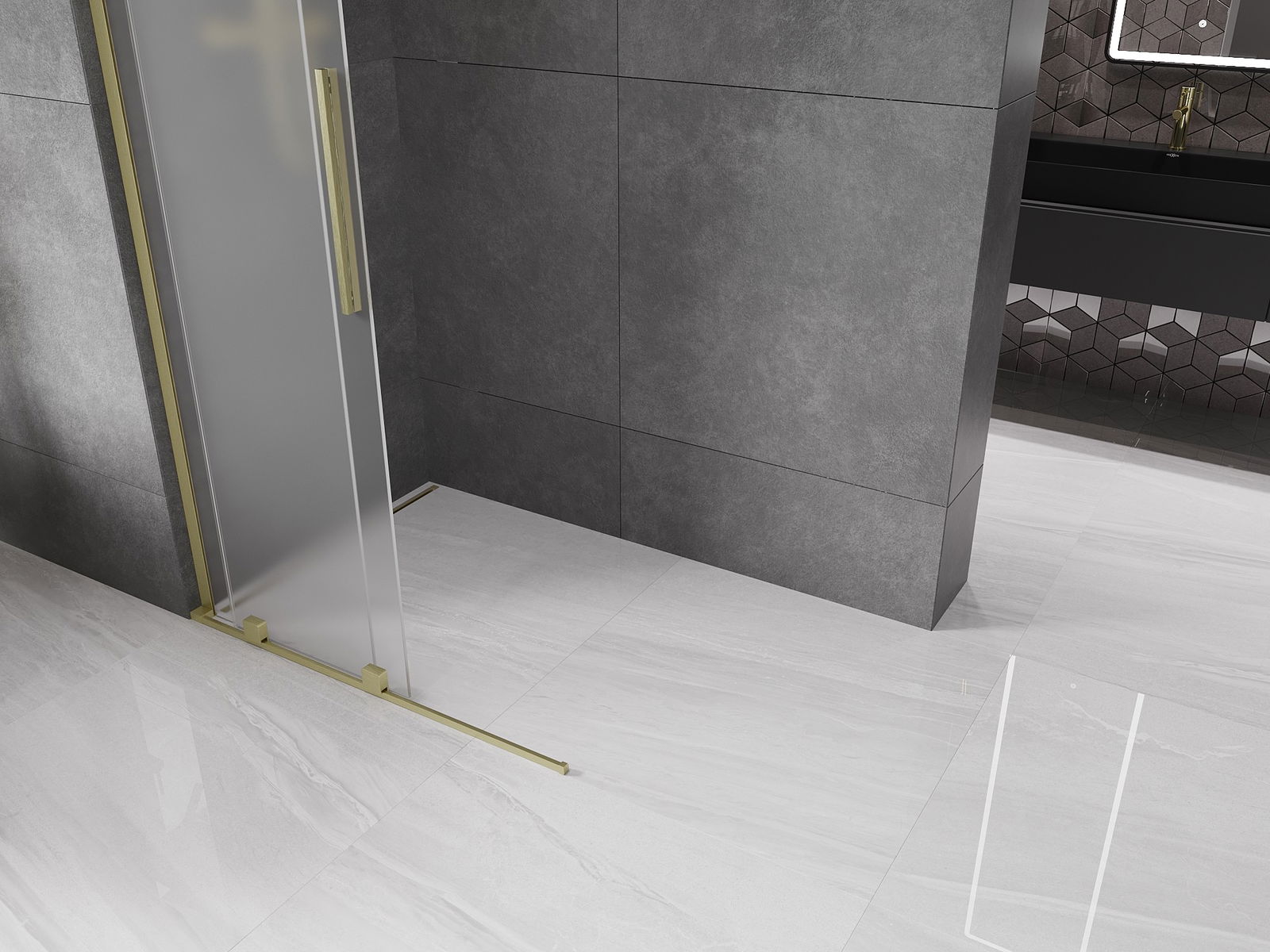 Mexen Velar L douchewand schuifdeur Walk-in 100 x 200 cm, ijs 8 mm, goud geborsteld - 871-100-003-33-55