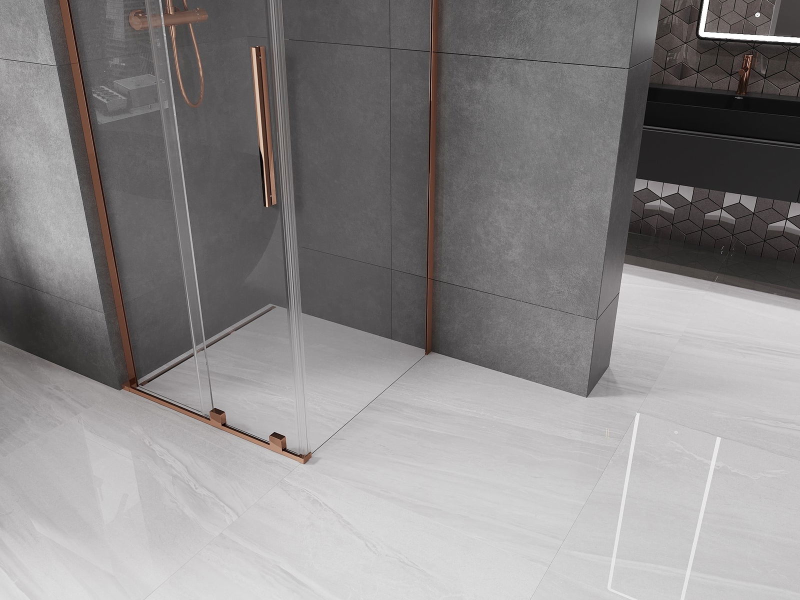Mexen Velar L douchecabine schuifdeur 90 x 90 cm, transparant, roze goud - 871-090-090-03-60