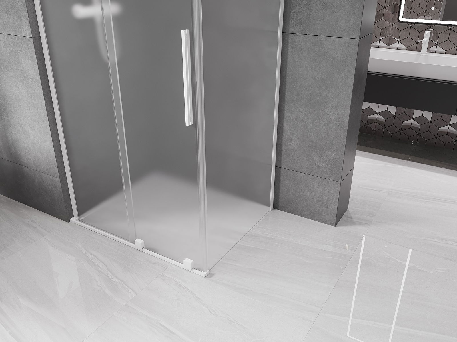 Mexen Velar L schuifdouchecabine 90 x 80 cm, matglas, wit - 871-090-080-33-20