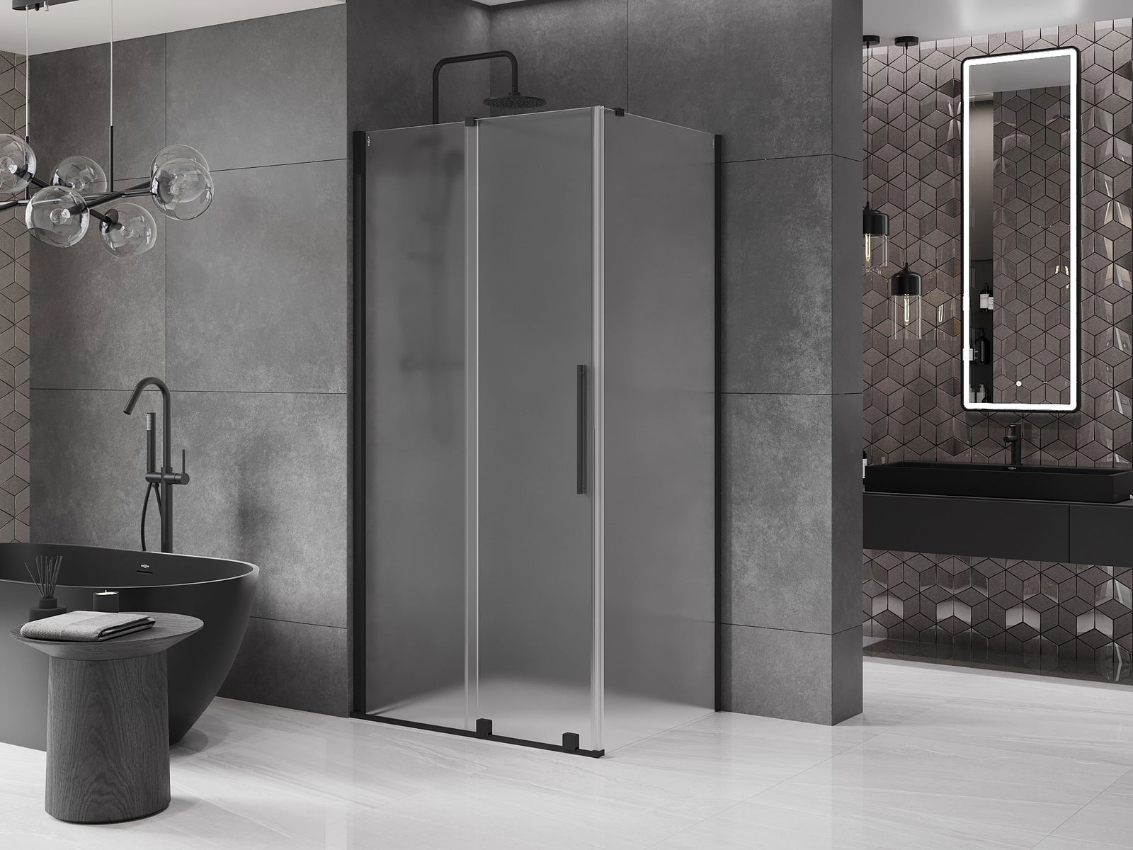 Het handige en comfortabele handvat is gemaakt van roestvrij staal. De modieuze vorm in combinatie met de afwerking die is afgestemd op de kleur van de profielen geeft het geheel een moderne en stijlvolle uitstraling, en benadrukt de esthetiek van elke badkamer.