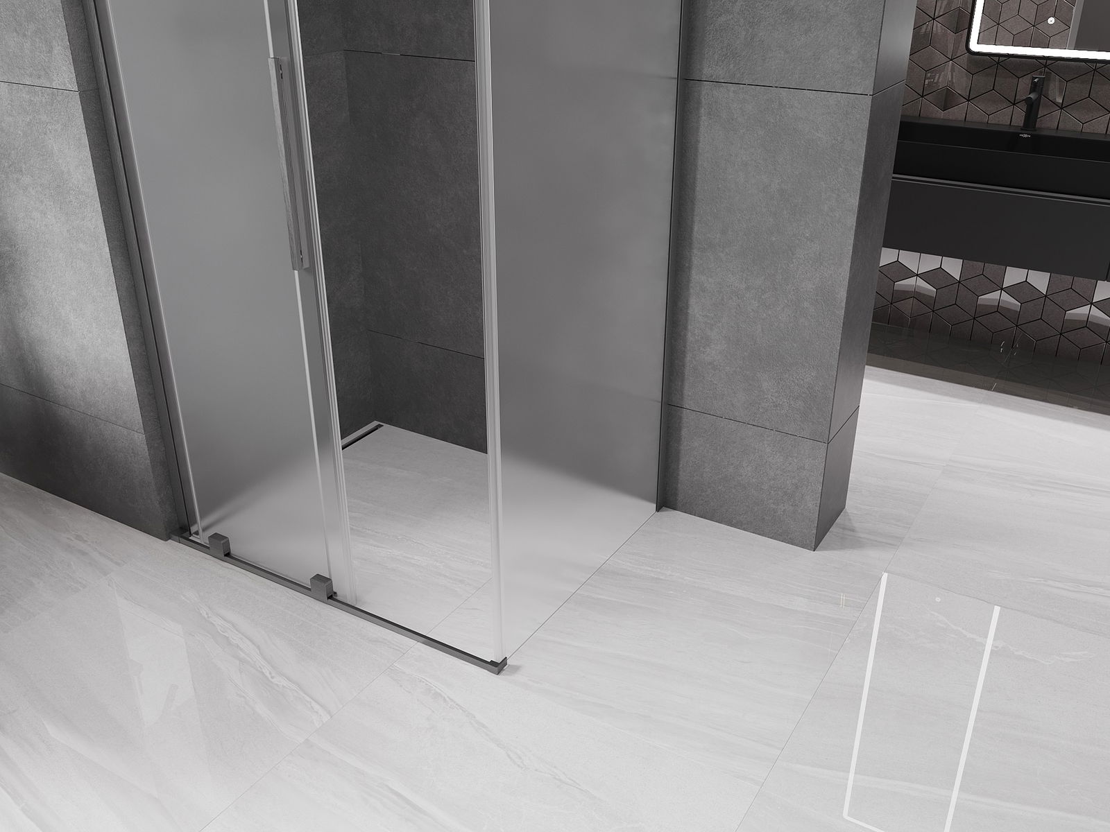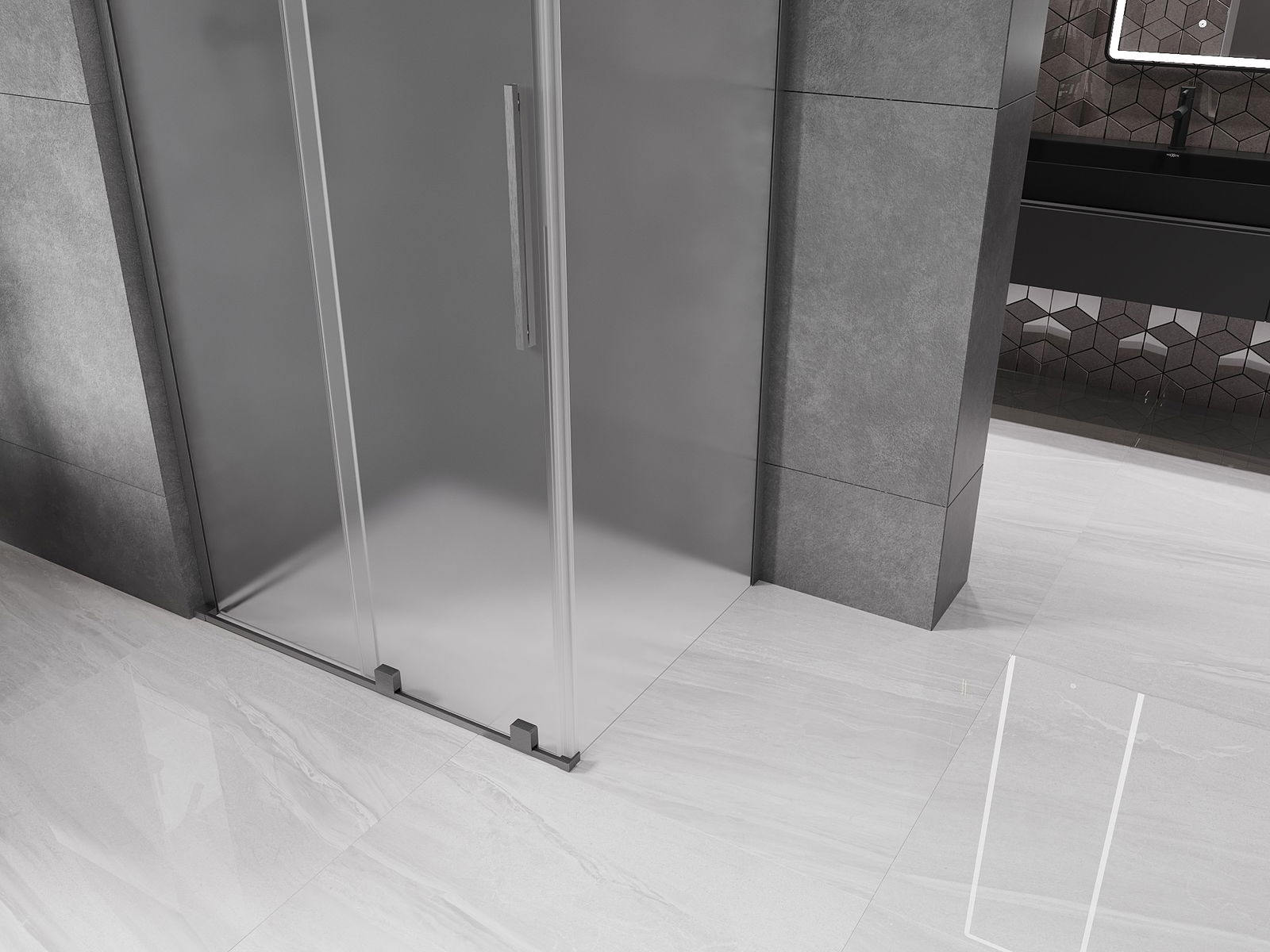 Mexen Velar L schuifdeur douchewand 90 x 110 cm, ijsmat, geborsteld geweergrijs - 871-090-110-33-66