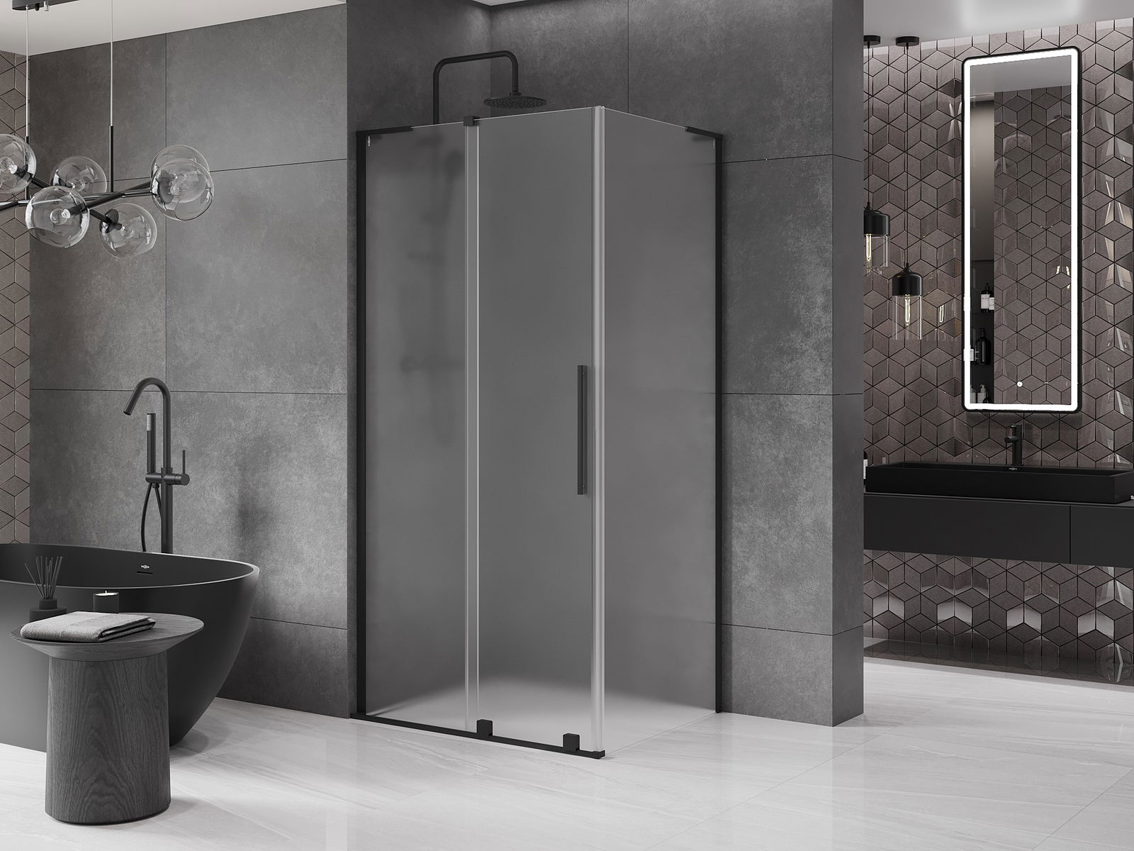 Het handige en comfortabele handvat is gemaakt van roestvrij staal. De modieuze vorm in combinatie met de afwerking die is afgestemd op de kleur van de profielen geeft het geheel een moderne en stijlvolle uitstraling, en benadrukt de esthetiek van elke badkamer.