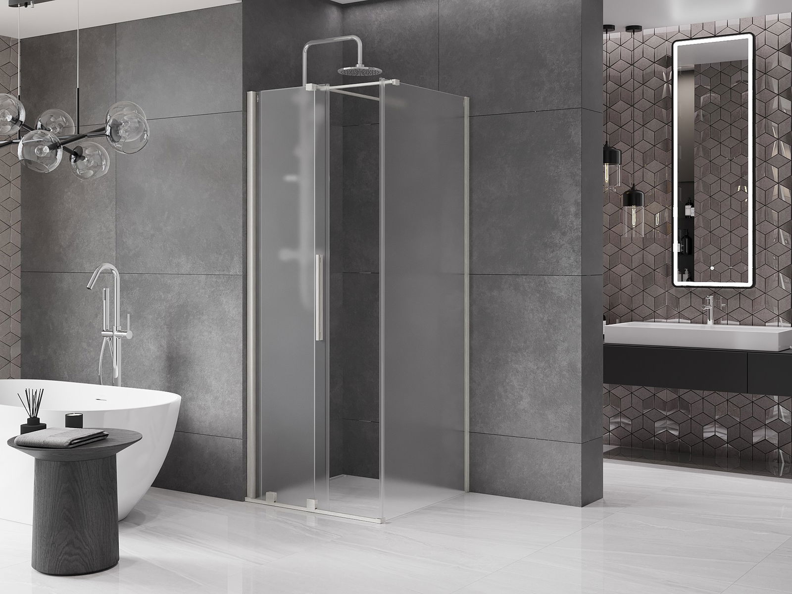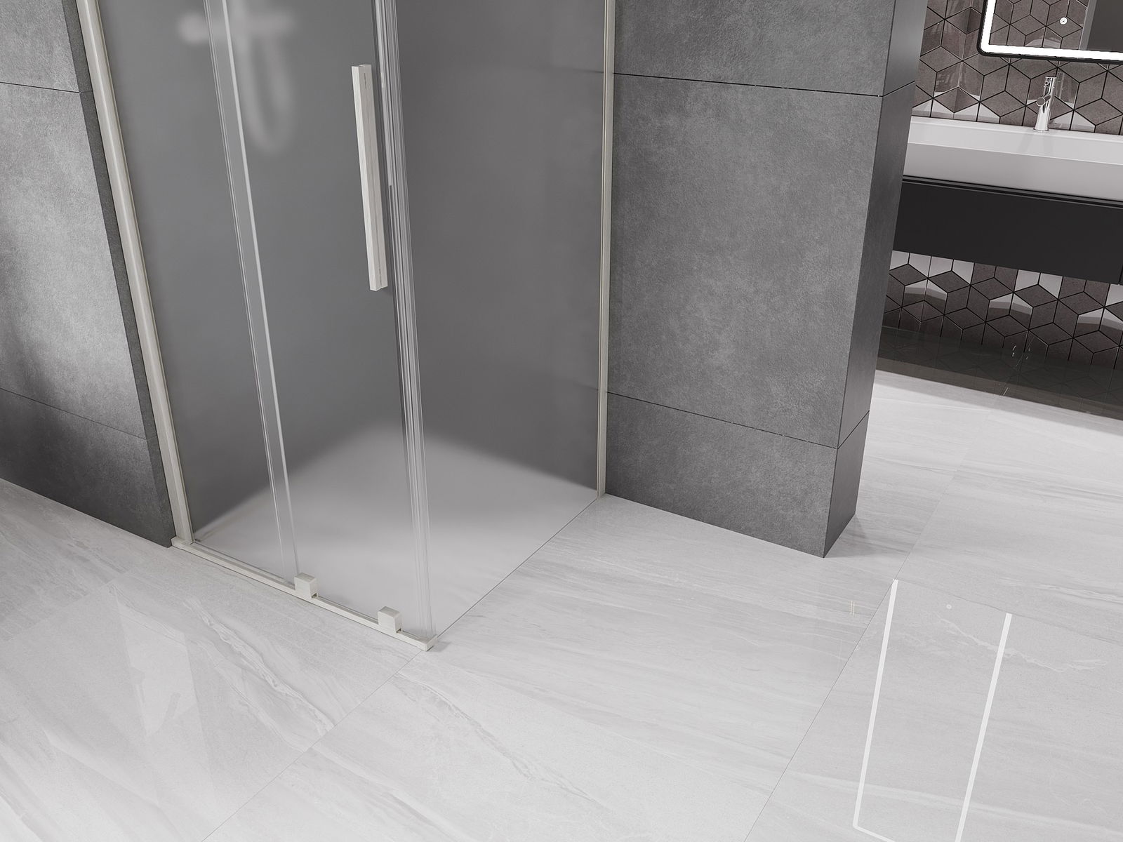 De handige en comfortabele handgreep is gemaakt van roestvrij staal. De modieuze vorm, gecombineerd met een afwerking die qua kleur aansluit bij de profielen, geeft het geheel een moderne en stijlvolle uitstraling en versterkt de esthetiek van elke badkamer.