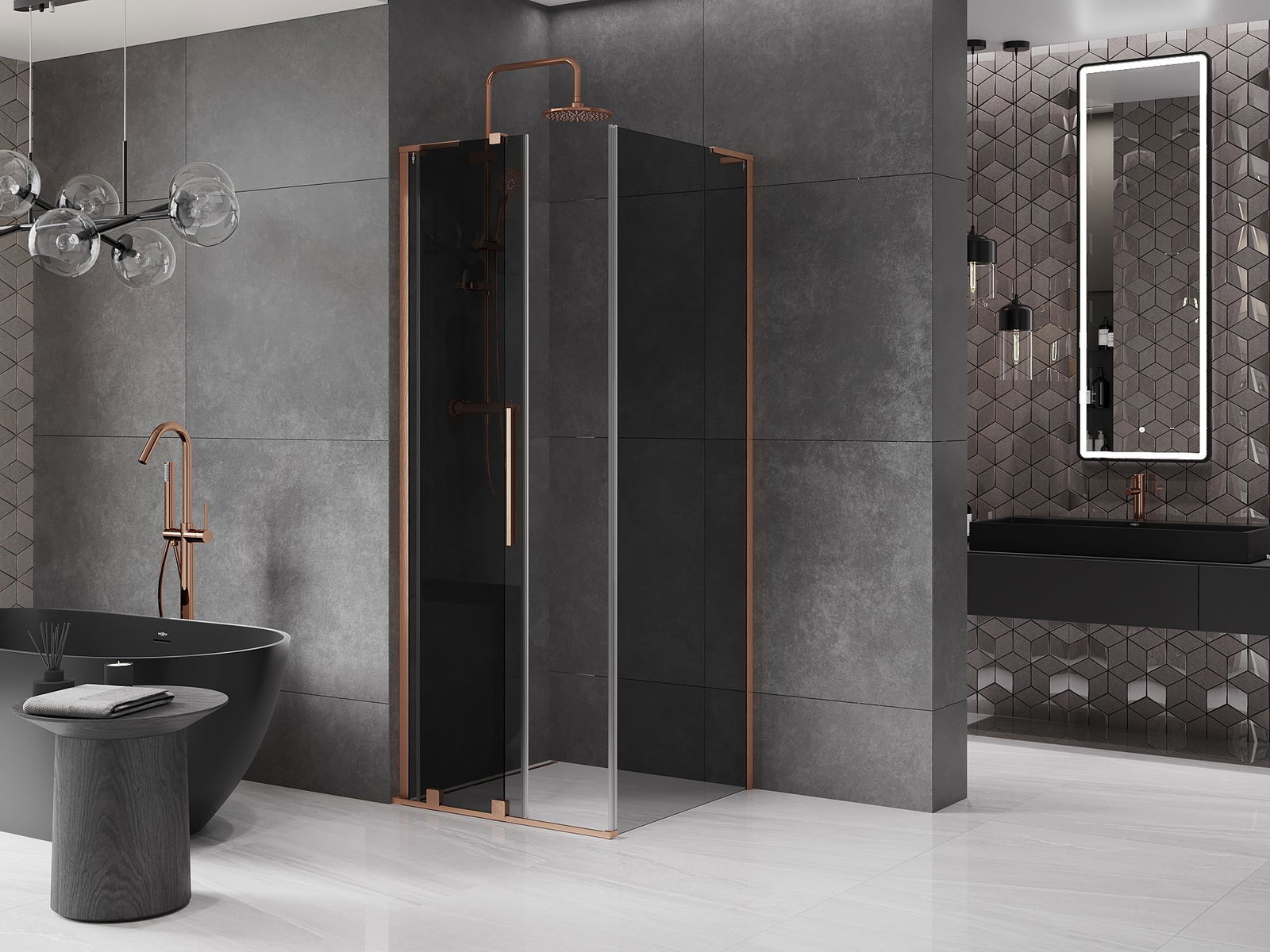 Mexen Velar L schuifdouchecabine 110 x 110 cm, grafiet, geborsteld koper - 871-110-110-43-65