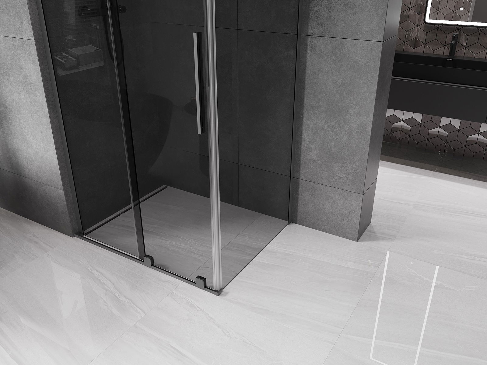 Mexen Velar L schuifbare douchecabine 90 x 75 cm, grafiet, gun metal - 871-090-075-43-95