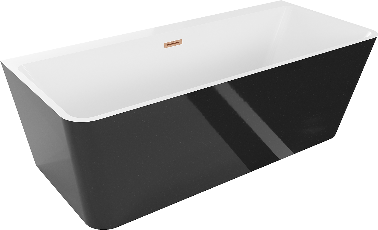 Mexen Volta vrijstaande muurbadkuip 170 x 75 cm, wit/zwart, borstelkoperen overloop - 51131707575-65