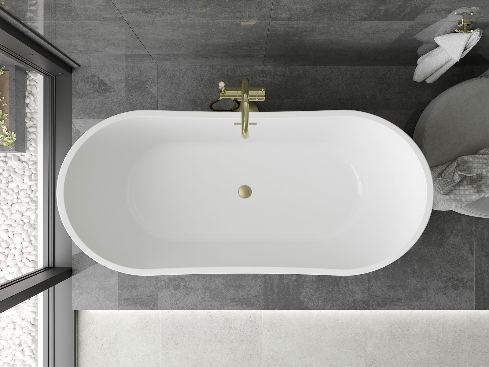 Mexen Montana vrijstaande badkuip 150 x 75 cm, wit/zwart, overloop goud geborsteld - 52011507575-55